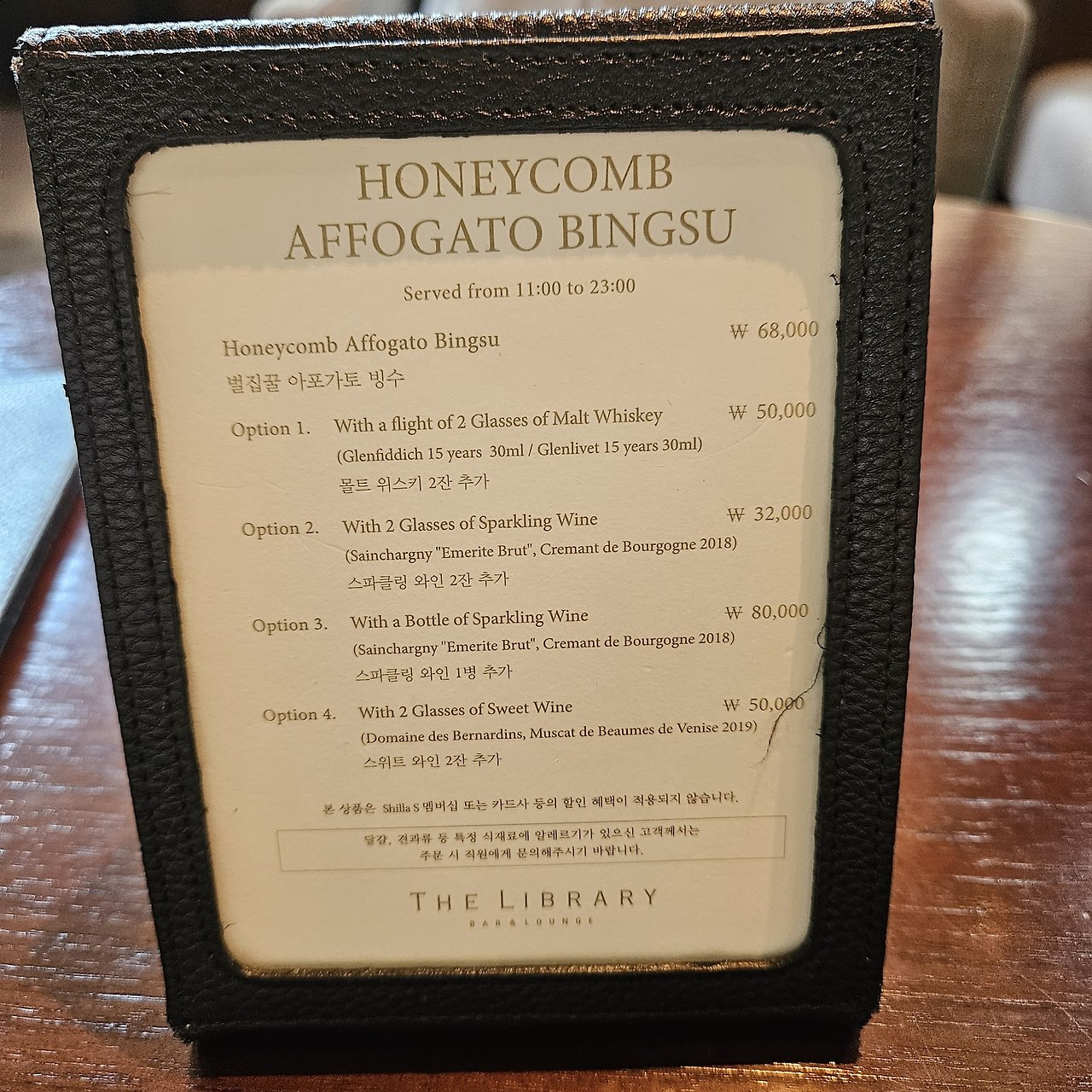 허니콤 아포가토 빙수. 빙수는 6만 8천 원이고, 추가로 술을 판다. 빙수와 술? 드링커한텐 안 맞는 조합이다.