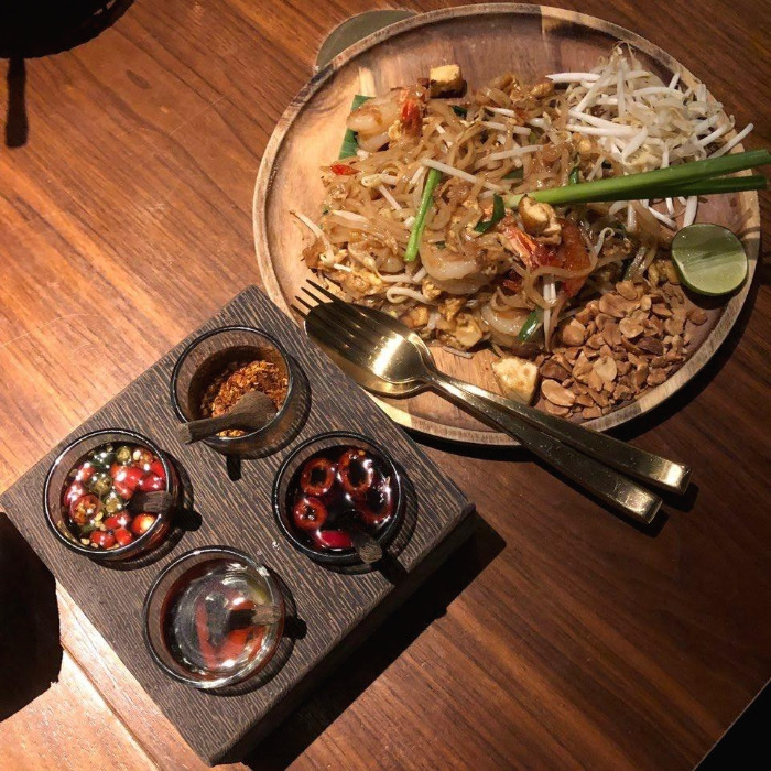 팟타이와 칠리 4종 세트. 칠리를 더 달라고 하면 네 종을 가져다주는 점이 상당히 마음에 든다.
