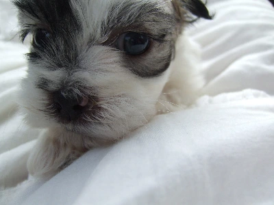 5마리 중 셋째 (첫째 시츄 남아, 둘째 시츄 남아, 셋째 시츄+몰티즈 남아, 넷째 몰티즈 여아, 다섯째 몰티즈 여아)