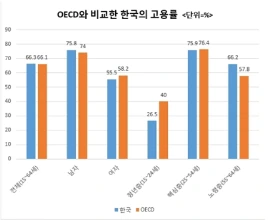 2015년 OECD와 한국의 여성 고용율을 보면 한국은 56%로 OECD 평균보다 낮은 수치를 보이고 있으며, 순위는 34개국중 26위로 하위권이라고 합니다. 남성의 경우는 OECD 평균보다 높은 75.8%를 차지하고 있네요.