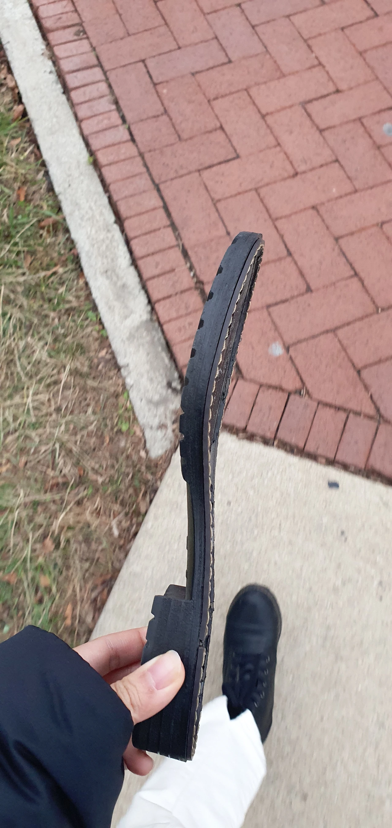 이상하게 신는 신발마다 희한하게 이렇게 밑창이 통으로 잘 떨어진다. 플랫슈즈, 옥스퍼드화, 워커 할 것 없이 맨날 신발이 이렇게 부서지곤 하는데 왜 그러는지를 모르겠다. 발 구조가 이상한가? 유난히 신발 밑창이 잘 망가진다. 싼 것만 신어서 그런가? 비싼 신발은 안 그러려나? 모르겠다. 문제는 집에 도착하려면 25분 정도를 더 걸어야 한다는 것이었다. 조금만 더 버텨줘! 하는 심정으로 살금살금 조심히 반쯤 떨어진 밑창을 신중하게 잘 끌며 가고 있었다. 모든 신경이 발바닥을 향하는 것만 같았다. 조마조마했다.