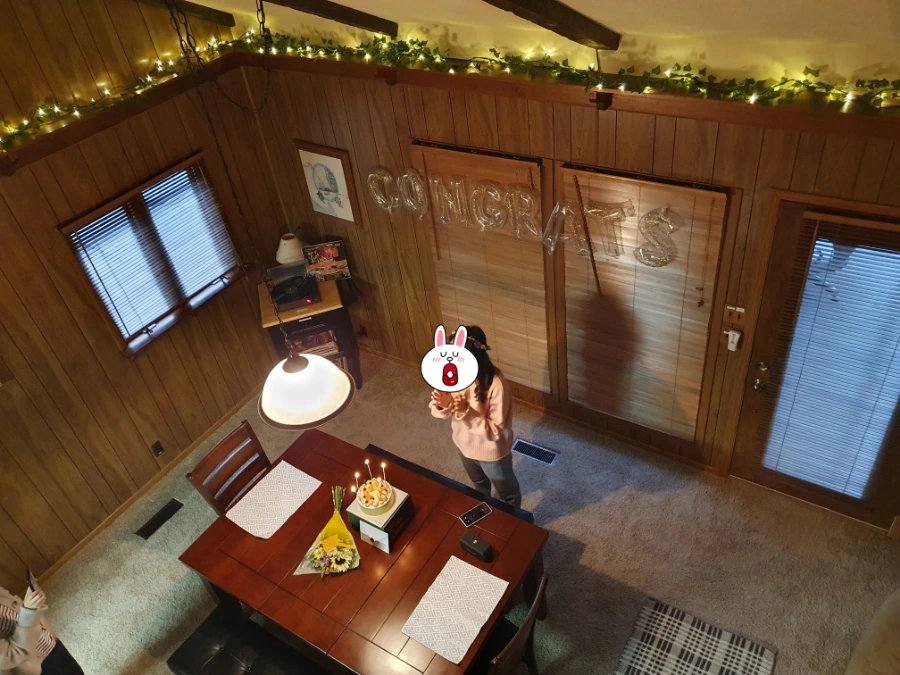 숙소에 와서 짐을 풀고 잠시 한숨을 돌리고 있는데 아래층이 뭔가 분주한 듯하더니, 예상도 못 하게 깜짝파티가 펼쳐졌다. 대학원 합격 축하파티였다. 생각도 못 해서 얼떨떨하고, 이토록 과분한 축하를 받아도 되나 싶어 감동이었다. 늘 주는 것보다 받는 것이 많은 것 같아서 감사하고도 마음이 무겁다. 살면서 차근차근 되갚아나가야겠다고 다짐하는 시간이었다.
