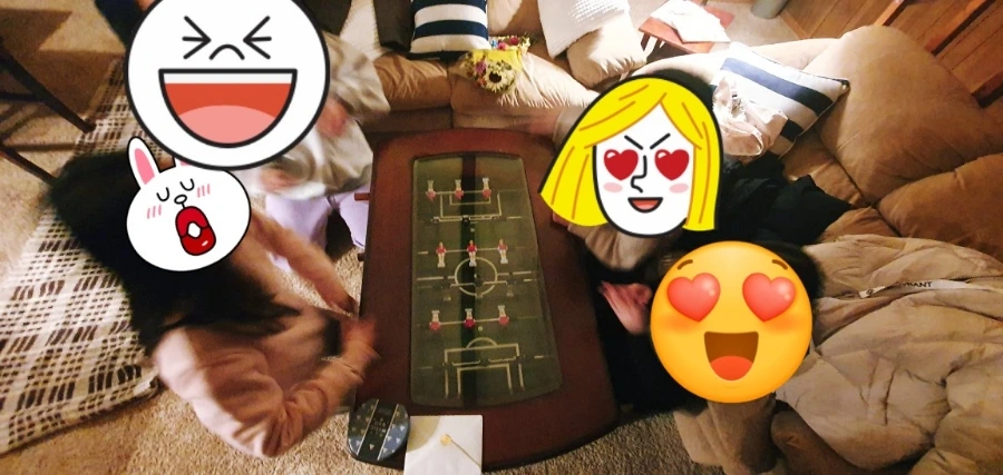 손으로 하는 축구게임도 재밌었다. 이날, 신들린 엄청난 기술이 등장했다.