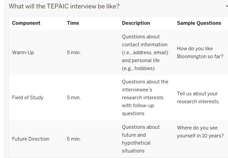 홈페이지를 보면 시험은 위와 같이 크게 세 파트로 구성된다고 나온다. 인터뷰 세션에는 Department of Second Language Studies에 소속된 평가자 2명이 들어오며, 인터랙션은 안 해주고 질문만 연쇄적으로 던져준다(때문에 조금 뻘쭘하다). 혼자서 주절주절 이야기하면 된다. 위의 샘플 질문들을 중심으로 혼자서 연습을 했었는데, 실제 기출 질문들은 살짝씩 달랐다. 이번에 기출된 질문들은 다음과 같다.