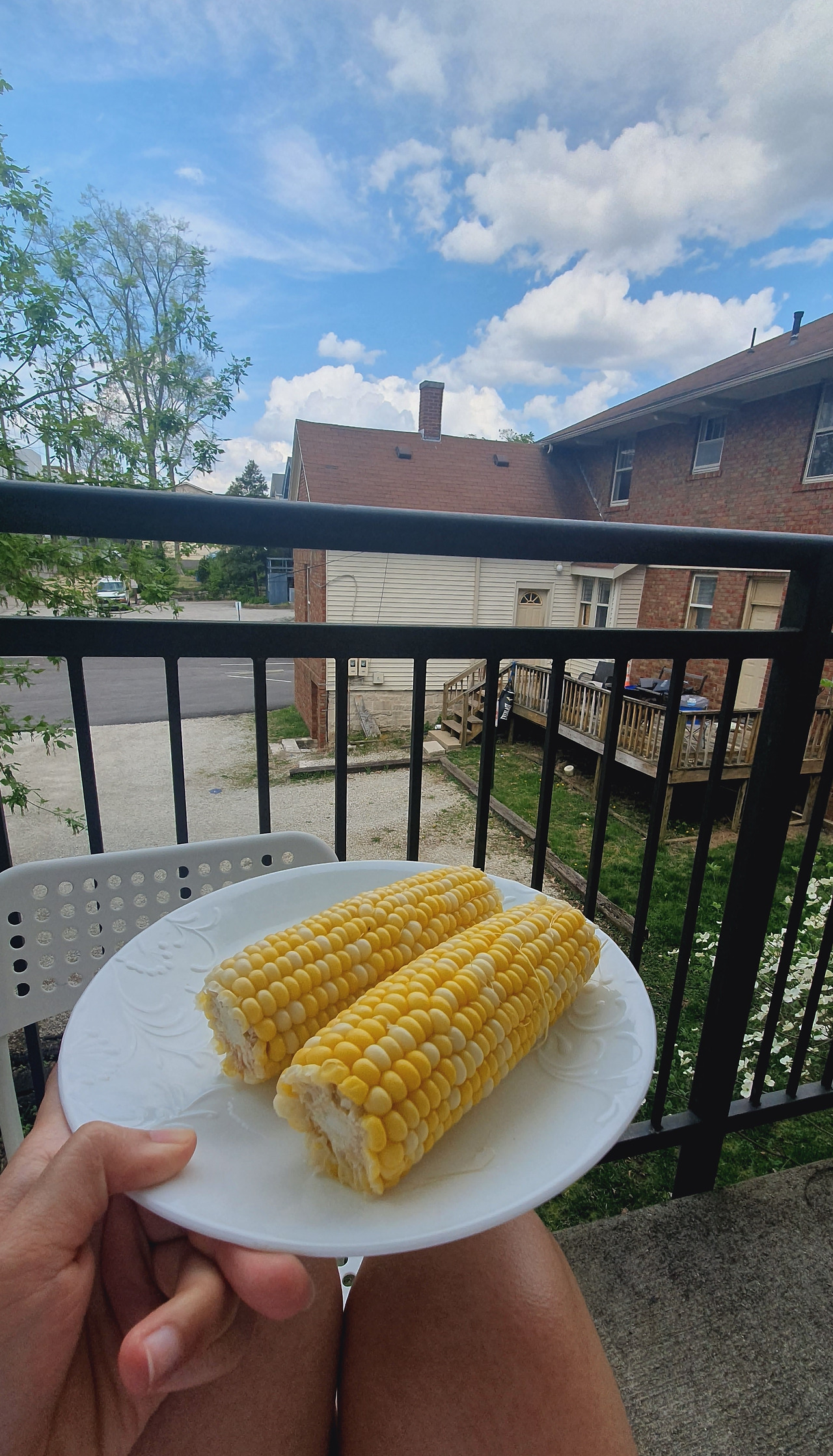 혼자서 테라스에서 별 짓을 다 하는데, 옥수수도 쪄서 신나게 먹는다. 인디애나 하면 또 옥수수밭 아니겠는가? 옥수수가 정-말 달고 맛있다. 한적한 느낌을 즐기며 테라스에서 간식을 먹는 것이 낙이다. 다만 꽤나 자주 신나게 옥수수 하모니카를 부는 중에, 저 앞집의 뒷문으로 사람이 나와 눈을 마주칠 때는 조금 민망스럽다. 옆집 사람이 테라스에 나올 때도 있다. 너무 열정적으로 씹고 뜯고 맛보는 모습은 보이기 조금 그렇다. 멋쩍어서 후다닥 들어온다.