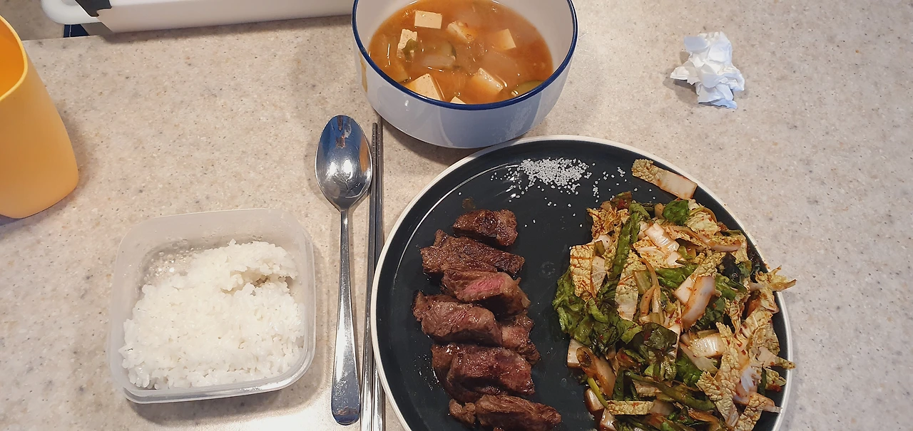 사람은 역시 따뜻하고 맛있는 음식을 먹으며 살아야 한다는 생각과, 삶에 무슨 일이 있더라도 잘 먹고 잘 살겠다는 의지를 다지는 시간이었다. 오늘 미팅에서 교수님이 원하던 것을 잘 구현해 내지 못해서 속상했지만, 미팅 내 온 힘 다해 집중하느라, 또 한 주 알차게 사느라 고생했다, 나 자신.