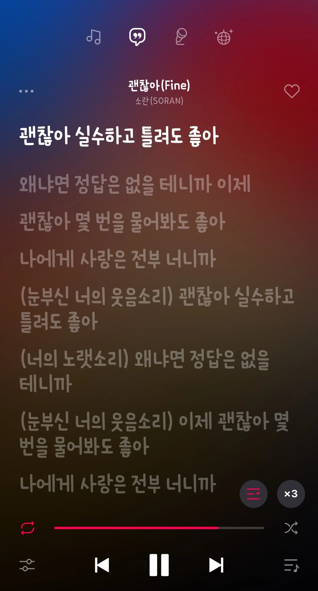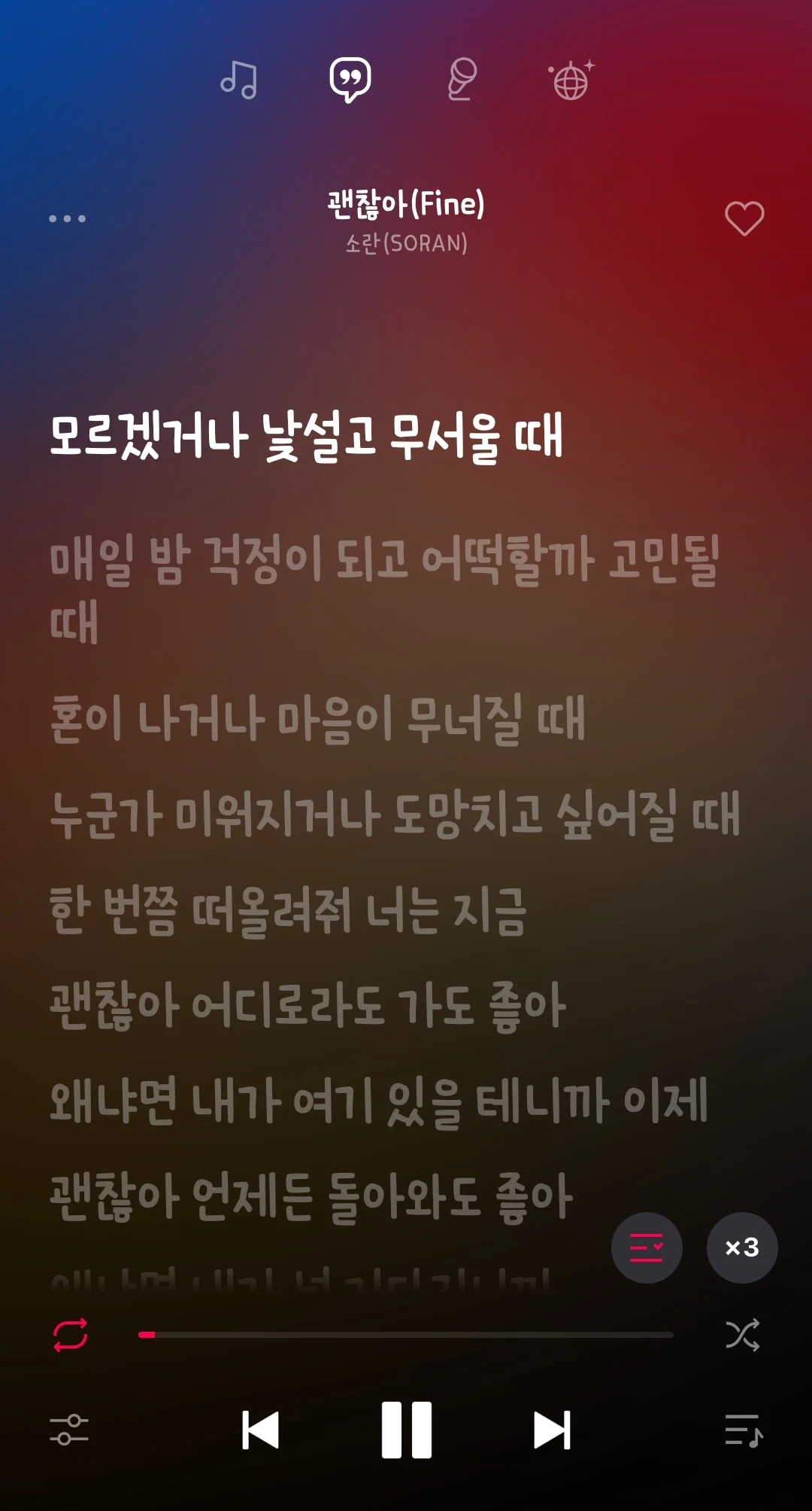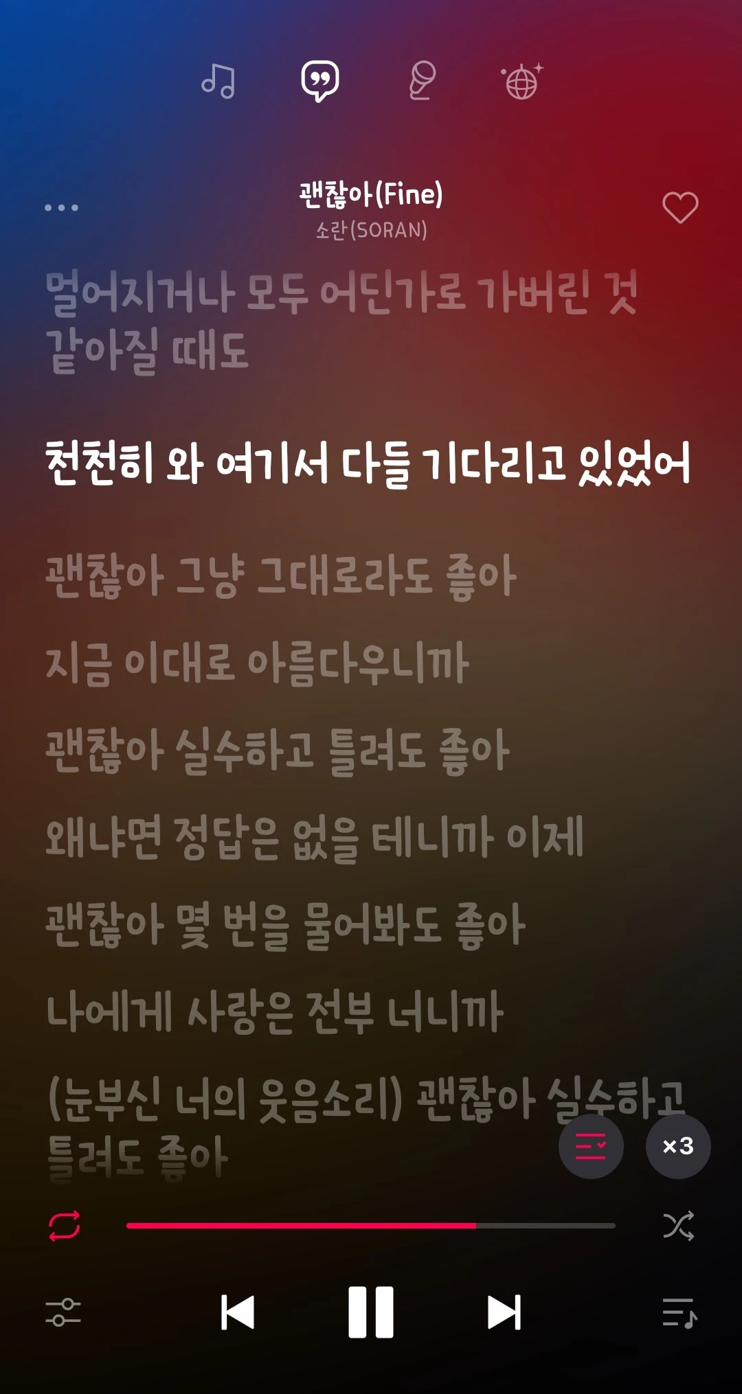 정말이지 쉽지 않은 하루라고 생각하며 차에 타서 힘들 때 제일 먼저 찾는 노래를 틀었다. 소란의 '괜찮아'라는 노래인데, 가사가 정말 따뜻하다. 힘든 하루 보낼 때 꼭 들어보기를 추천한다.