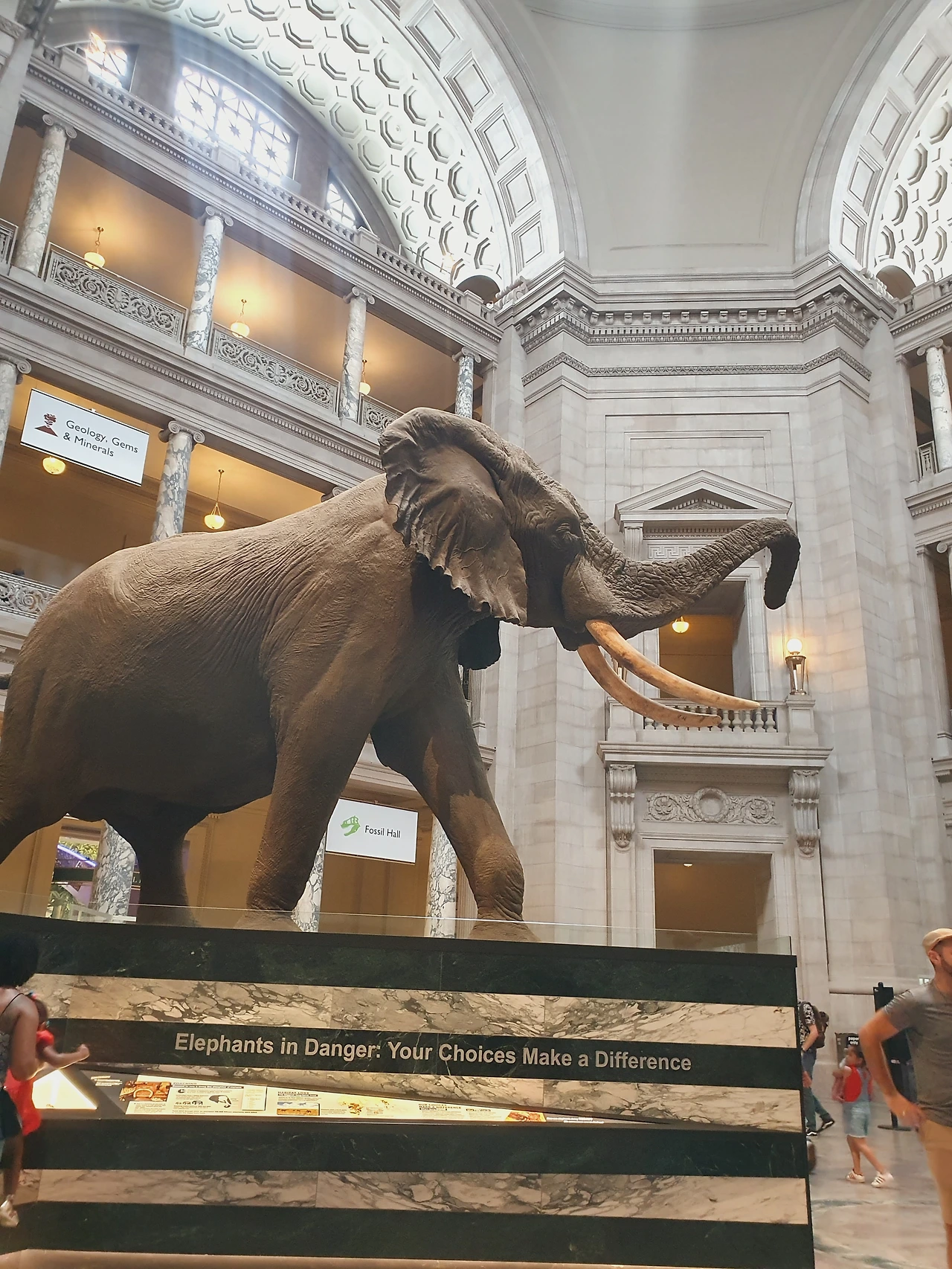 배를 채우고 다시 힘을 내어 자연사박물관까지 걸어갔다. 공휴일이라 그런지 입장료가 없었다. 간단한 짐 검사만 마치고 입장할 수 있었다. 입장 후 에스컬레이터를 타고 한 층을 올라가자, 이 박물관의 시그니처 동물인 매머드가 반겨주었다. 이 박물관은 영화 '박물관이 살아있다'의 배경이 된 곳으로, 어릴 적 재밌게 봐서 그런지 잠시 나이와 체면을 다 잊고 동심으로 돌아갔다.