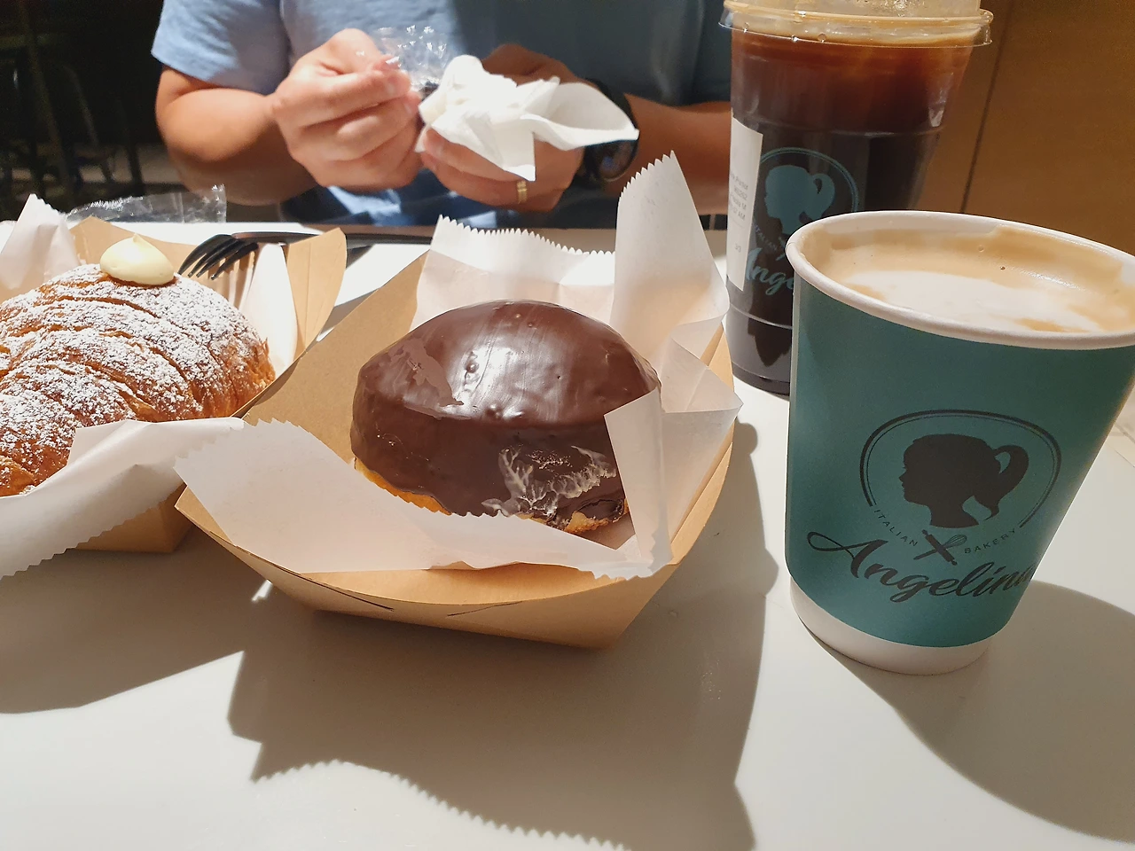 슈크림이 들어간 크루아상과 보스턴 크림빵, 아이스 아메리카노와 카푸치노를 주문했다. 와......! 소리가 나오는 맛이었다. 이런류의 조리빵을 못 먹어본 지 하도 오래돼서 그런지 갓 구워 나온 빵에 크레마 고소한 커피를 먹으니 비로소 도시에 왔구나 싶은 생각이 들었다. 당과 커피가 들어가니 텐션이 올라가기 시작했다.
