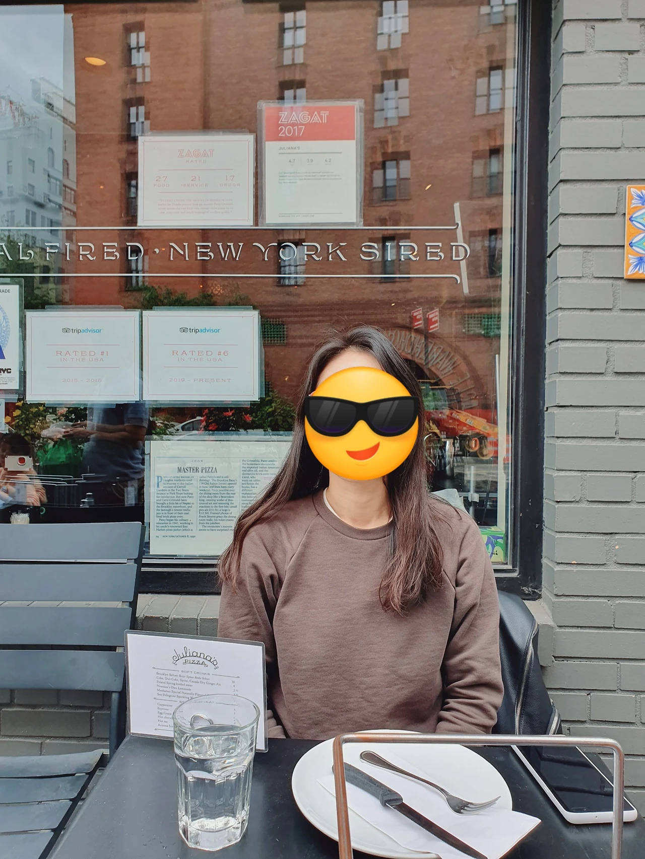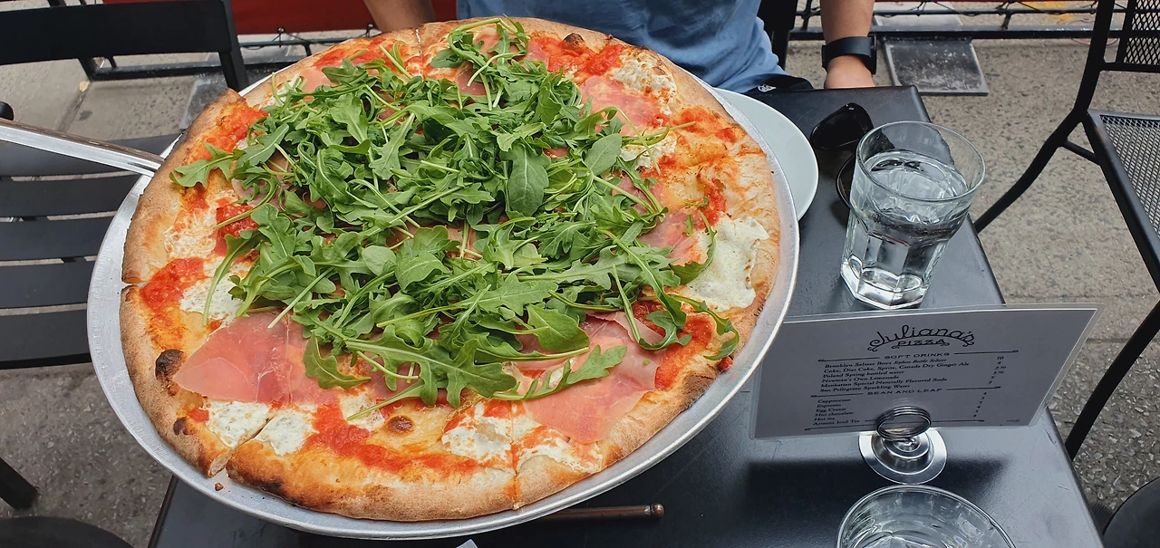 브루클린의 맛집이라고 평이 자자한 줄리아나 피자에 갔다. 식사 시간에 가면 줄이 길다고 해서 일부러 식사 시간에는 아이스크림 가게에서 요기를 하고, 주변 브루클린 브릿지 공원을 자전거로 주욱 둘러보다가 식사 시간을 한참 피해서 갔다. 덕분에 대기 없이 바로 앉아서 먹을 수 있었다.
