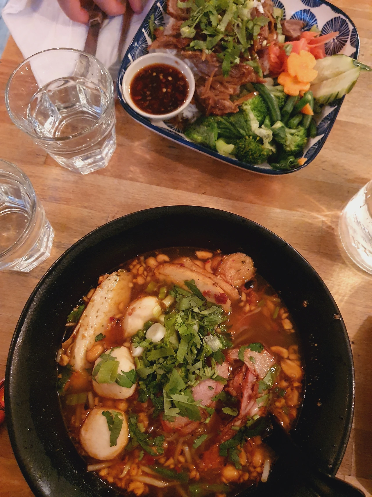 개인적으로 타이 음식 애호가인지라, 뉴욕에서도 타이 음식을 찾아 나섰다. 우연히 찾은 곳인데, 뉴욕 직장인들이 퇴근하고 들르는 그런 음식점이었다. 셔츠에 슬랙스를 입은 사람들이 가득가득했다. 크기는 작고 테이블 간격도 좁지만 완연한 만석이었다. 역시나 식사시간을 피해 갔기에, 거의 기다리지 않고 바로 먹을 수 있었다. 개인적으로 똠얌꿍 누들 수프 매니아라 주문해 보았다. 맛있다. 따뜻한 누들 수프 하나 먹으면 피로가 한층 녹는 기분이다. 팬시하고 근사한 레스토랑은 아니지만, 타이 음식을 좋아한다면 추천하는 식당이다.