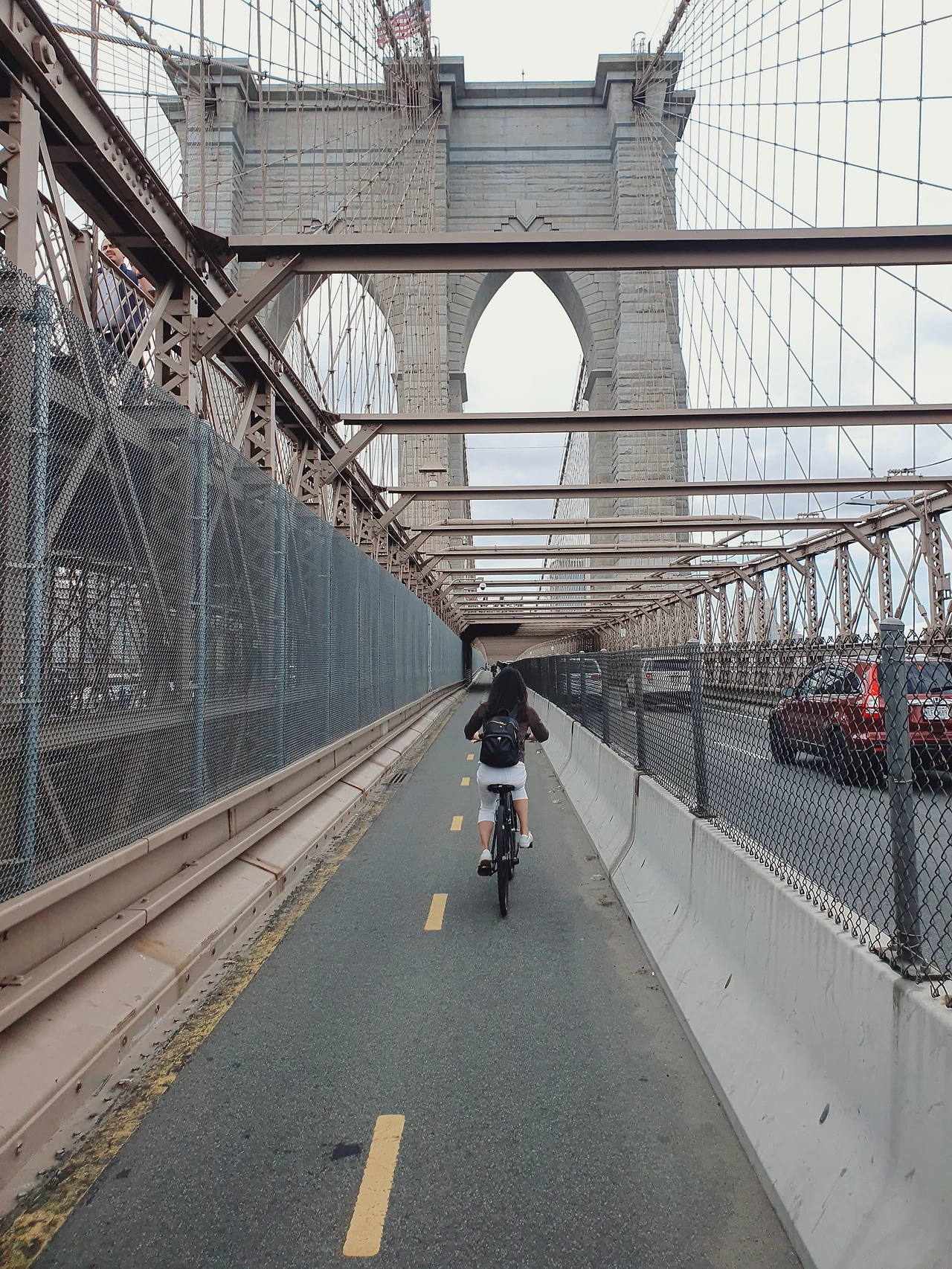 브루클린 브릿지를 넘을 때 오르막에서 허벅지가 조금 불나는 것 같은 감은 있지만 기어 조절이 가능해서 한결 수월하다. 무엇보다 다리를 건너서 보는 뉴욕 풍경이 끝내준다. 씩씩하게 자전거를 이끌고 이런 풍경을 눈에 가득 담을 수 있다는 사실 모든 것에 감사한 순간이었다.