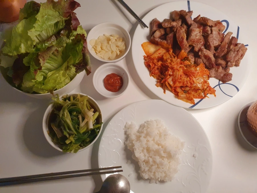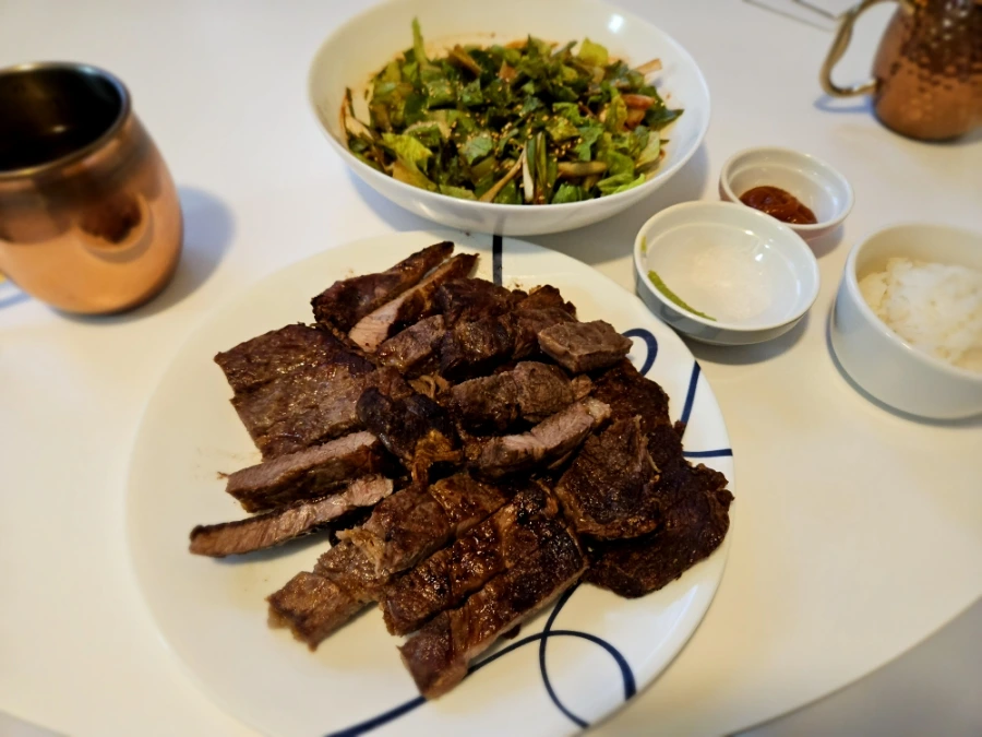 소고기 구이와 겉절이
