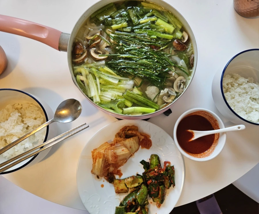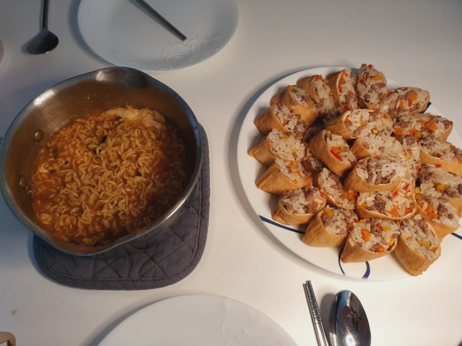 미국에 나오기 전 스스로도 궁금했던 것 중 하나가, 과연 어떤 음식을 먹고 살 것인가에 대한 것이었다. 범람하는 햄버거와 감자튀김, 윙, 피자 속에서 서양 음식 패치가 깔린 남편에게는 천국이 따로 없지만, 소위 '국밥충'인 필자에게 미국식 식단은 고충이라면 고충이다. 한두 세 끼만 연달아 먹어도 속이 느끼하고 얼큰한 국물이 댕겨서 집에서 한식을 해먹게 된다. 생각보다 한국 식자재들이 미국 시골에서도 구하기 어렵지 않아서 집밥을 유지하기에 큰 어려움은 없다. 바쁜 와중에 밥까지 해먹으려면 여간 고단한 게 아니지만, 이만큼 힘나는 것도 없다.