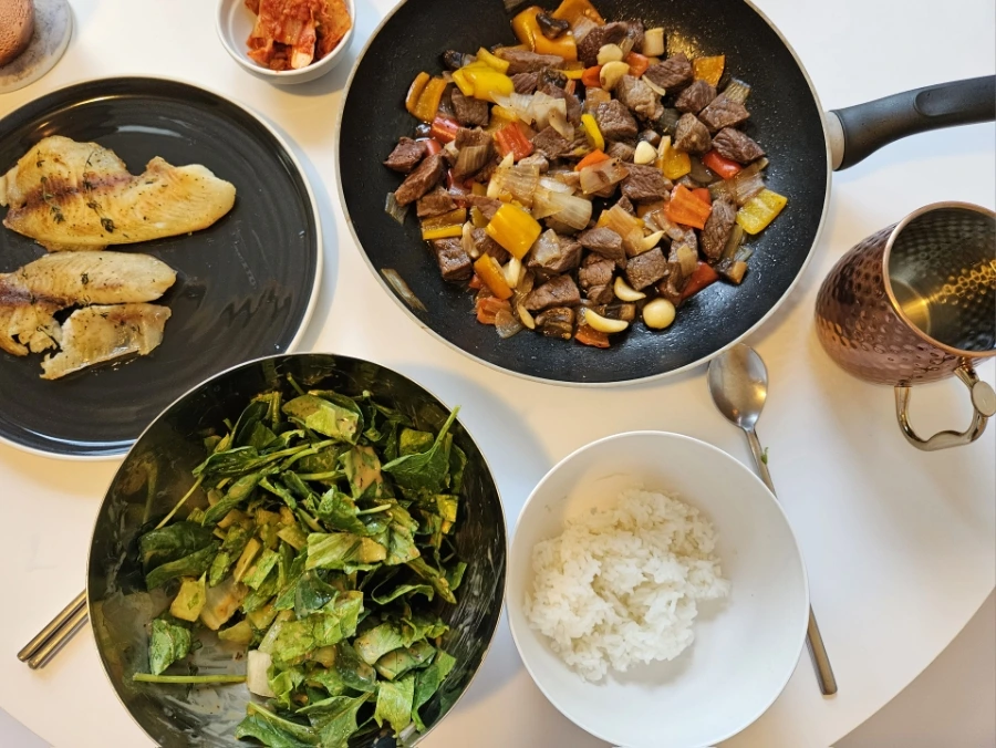 매일 비슷한 밥을 먹다가도 지겨워질 때면 한 번씩 유튜브를 통해 새로운 메뉴를 연구하고 시도해 본다. 미국에서는 물가와 팁 때문에 외식보다는 집밥을 많이 먹게 되는데, 이 기회에 요리 실력도 키우고 집밥 레퍼토리도 다양하게 늘려보려고 한다. 부디 바쁜 학기 중에도 건강한 음식이 단단하게 삶의 중심을 잡아주기를 바라며 집밥 포스팅을 마무리한다.
