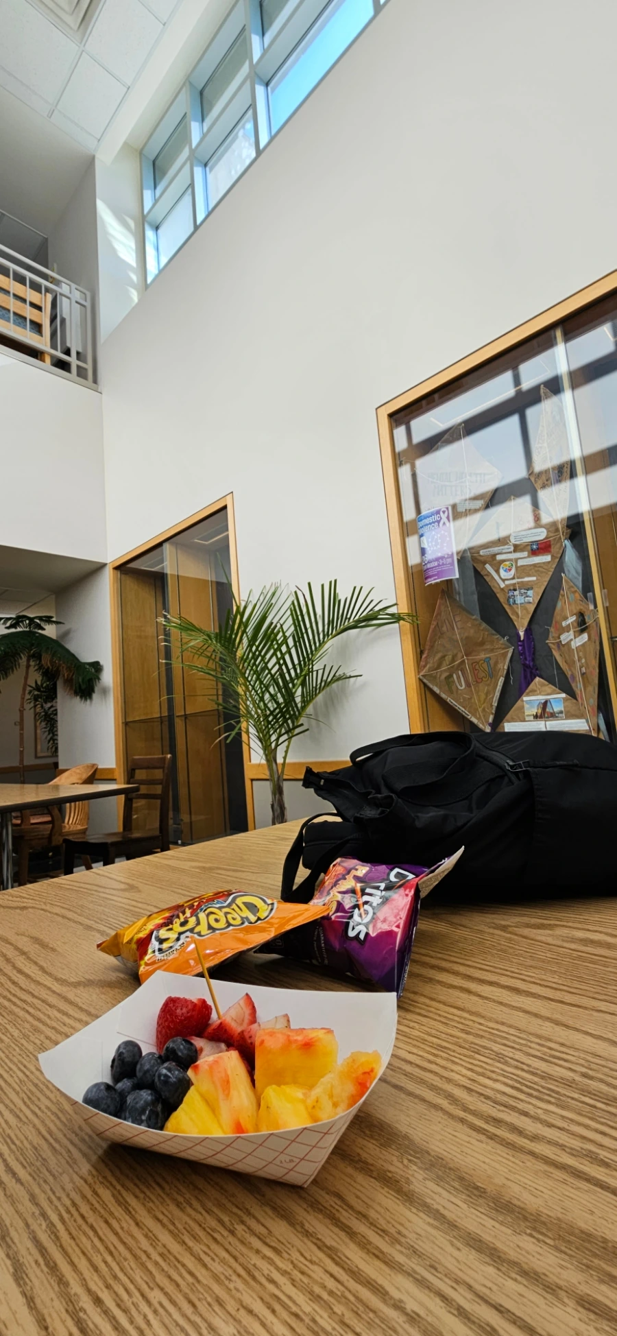 아침 수업-슈퍼비전-미팅의 연달은 일정 때문에 점심을 못 먹고, 학과에서 가끔 제공해 주는 간식으로 끼니를 때운 날이었다. 미팅 마치고 허겁지겁 와구와구 먹었다. 다행인지 불행인지 이런 일정들 때문에 미국에서 살아도 살이 하나도 안 쪘다. 12시와 1시에 슈퍼비전과 미팅 잡는 교수님들 덕분에 행복합니다.......