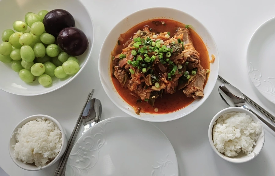 우리 집 시그니처 특식 중 하나인 김치 등갈비찜이다. 개인적으로 매우 좋아하는 요리인데, 메뉴 하나만으로도 밥 몇 공기 뚝딱이다. 다만, 김치의 익은 정도가 관건인데, 사 먹는 김치로 적당한 때를 맞추기가 쉽지는 않다. 그렇지만 정말 맛있다. 등갈비를 두 대 정도 꼭 남겨서 남은 국물과 채소들을 프라이팬 넣고 밥과 김, 참기름을 추가해서 볶아먹는 것도 별미다. 사진은 아래에 있다.
