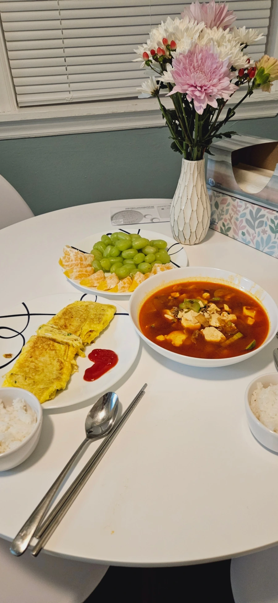 조촐하게 순두부찌개와 계란말이로 식사한 날이다. 얼큰한 국물에는 소울이 담겨있다. 호호 불며 한 대접 비우고 나면 몸도 따뜻하고, 후끈 활성화된 몸과 정신으로 뭐든 해낼 수 있을 것만 같다. 각성이 지나간 자리에는 이완과 졸음만 남는 것이 함정이지만 말이다.