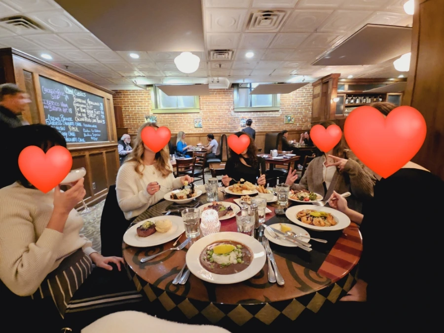 동기의 늦은 생일 파티 겸, 동기 개강 파티를 개최하였다. 다운 타운의 분위기 좋은 레스토랑에서 외식을 했다. 겨울방학에 다들 고향에 다녀오느라 다 같이 만난 게 근 한 달 만인 것 같다. 레스토랑에 모두 다 나가고 문을 닫기 직전까지 먹고 마시며 방학 때 있었던 일들을 소소하게 업데이트했다. 여전히 나 홀로 외국인 학생으로서 언어적 문화적 장벽은 존재하지만, 그럼에도 우리네 사람 사는 이야기를 듣는 것은 가장 좋아하는 일 중에 하나다.