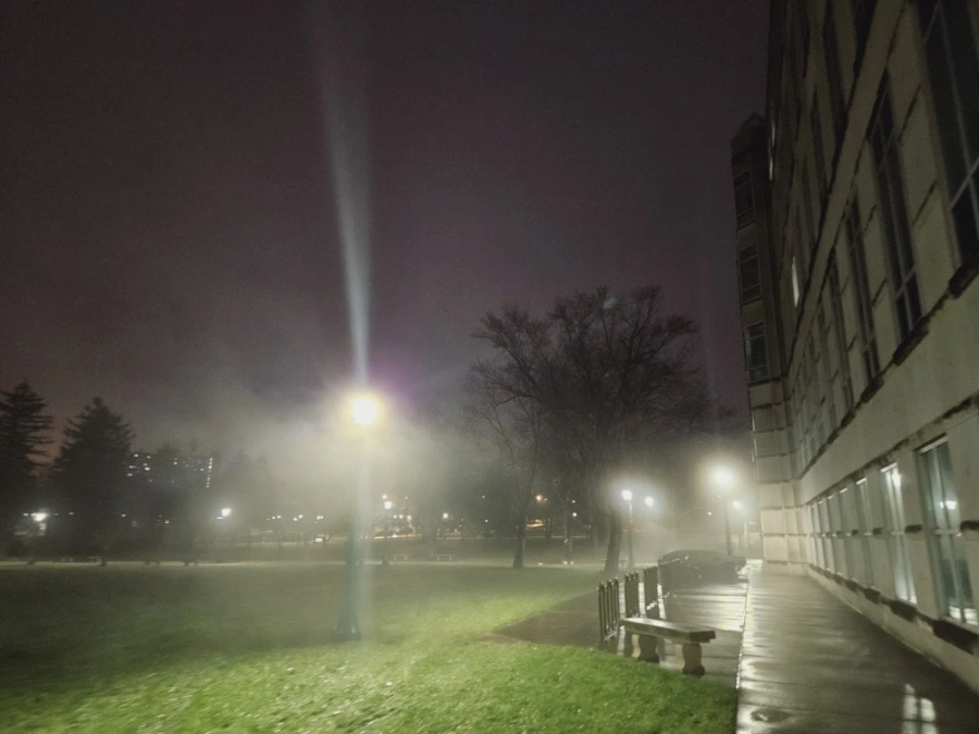 근래는 비도 많이 오고 수분 미스트처럼 미세한 안개가 자욱한 날들이 많았다. 아래 사진은 퇴근하고 집 가려는 길, 주차장에 안개가 자욱해서 미드 범죄 현장에 와 있는 기분이 들었다. 음산하기 짝이 없는 하루였다. 시야가 뿌옇고 좁아져서 운전하기도 꽤나 무서웠다. 시야가 너무 안 보이는 느낌이라 양쪽 창문을 다 내리고 기다시피 캠퍼스를 빠져나왔다.