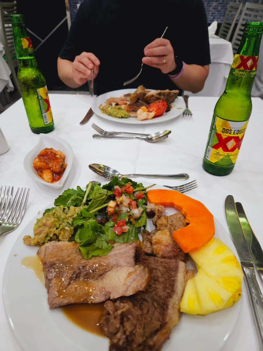 저녁 첫 끼로는 뷔페를 이용했다. 호텔 뷔페가 너무 오랜만이라 조금 흥분했다. 각종 스테이크류를 먼저 섭렵해오고, 체하지 않게 나름 파인애플과 샐러드로 완급 조절을 해 주었다. 또, 멕시칸 라거 맥주로 기분을 내보았다. 첫 끼 뷔페에서 거하고 든든하게 먹었다. 음식이 크게 맛있지는 않을 거라 기대를 별로 안 하고 갔는데 생각보다 입에 잘 맞고 맛있었다.