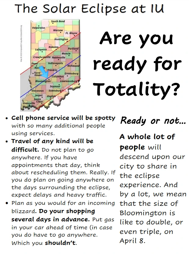 온 학교와 동네가 다음 주 개기일식 때문에 들썩들썩하다. 별 볼일 없는 이 시골 동네가 완전 일식을 볼 수 있는 몇 안 되는 루트에 속한다고 한다. 때문에 작디작은 인구 수 10만 미만의 시골 동네에 약 30만 정도의 관광객이 몰릴 것으로 추정된다고. 이 행사 덕분에 모든 수업은 다 취소되고, 학교는 이날을 위해 4년간 행사를 기획하고 준비했다고 한다. 학교에서는 1-2주 전부터 일식을 관찰할 수 있는 안경을 배부했다.