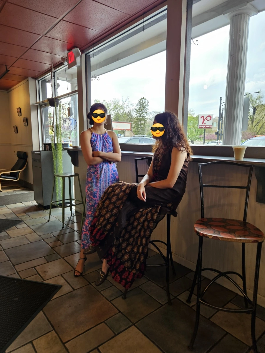 날이 너무 좋던 어느 날, 심리 상담 사이 짬을 내서 가까운 카페에 커피를 사러 다녀왔다. 친구 둘 다 봄이라고 어여쁘게 차려입은 게 예뻐서, 주문을 하고 기다리는 모습을 한 컷 담아보았다. 색감, 패턴 어딜 내놔도 화려함으로는 빠지지 않을 드레스였다. 평범하게 입고 두 친구 사이에 껴서 걸어가니 연예인들 사이에 낀 듯, 기분이 이상했다. 하여튼 삶을 재밌게 사는 친구들이다.