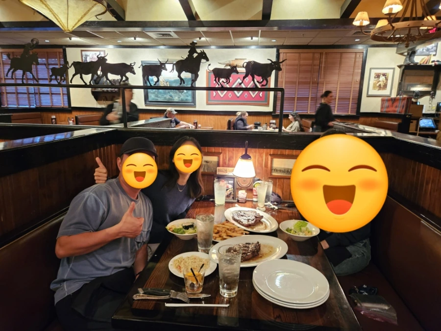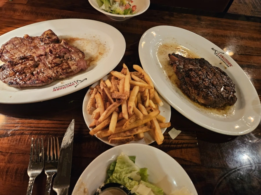 마지막 상담까지 종결 회기를 딱 마치고, 때마침 남편과 나리와 운 때가 딱 맞아서 Longhorn 스테이크 하우스에 가서 성대한 플렉스 파티를 했다. 다들 희한하게 많은 것들이 딱 알맞게 끝난 날이었다. 한 학기 고생과 노고를 치하하며 맛있는 음식으로 자축했다. 미국 맛이 낭랑한 음식들로 혈관에 염도를 잔뜩 끌어올리니 배도 부르고 기분도 좋았다는 후문이다. 역시 축하는 다 같이 해야 제맛이다!