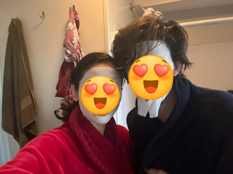 약혼식 당일 이른 시각, 약혼하는 친구에게서 문자와 함께 사진이 도착했다. 전에 피앙새랑 같이 써보라고 한국에서 가져온 팩을 줬었는데, 약혼식 날 아침에 같이 팩을 하고 이렇게 인증샷을 보내주었다. K-뷰티의 자긍심을 느끼며 약혼식 당사자들의 피부 결에 기여할 수 있어 너무 기뻤다. 둘 다 키도 엄청 큰데 얼굴은 또 조막만 해서 팩이 한참 커서 반쯤 떨어져 나와있었다. 웃겨서 혼자 보면서 피식 웃었다.
