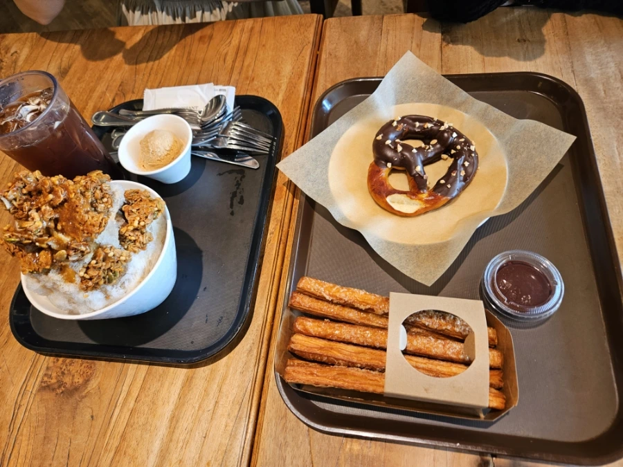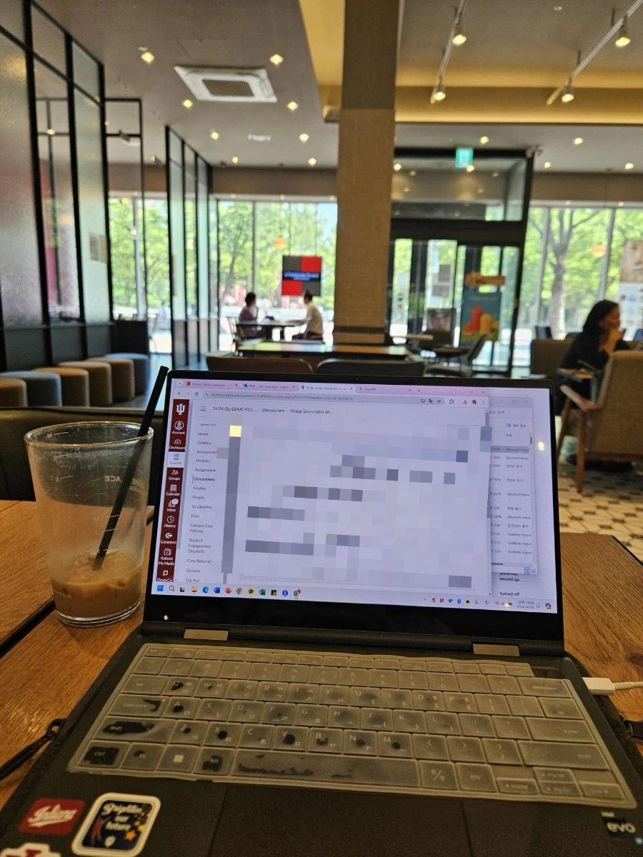 진짜 그리웠던 것 중 하나, 한국 아이스 라테다. 고급 진 곳에 찾아갈 필요도 없다. 그냥 저렴한 가성비 프랜차이즈 아이스 라테도 맛있다. 싸고 양 많게 쭉쭉 수혈할 수 있는 이 꼬수운 라테 맛이 그렇게 그리웠다. 1일 1라테로 소원 성취하고 있다. 미국에 돌아가면 다시 캡슐 커피로 돌아가야 하기에......! 누가 블루밍턴에 메가커피나 컴포즈 하나만 열어줘도 소원이 없겠다. 학교 가는 길에 하나 딱 픽업해서 가면 훨씬 살만할 터인데.