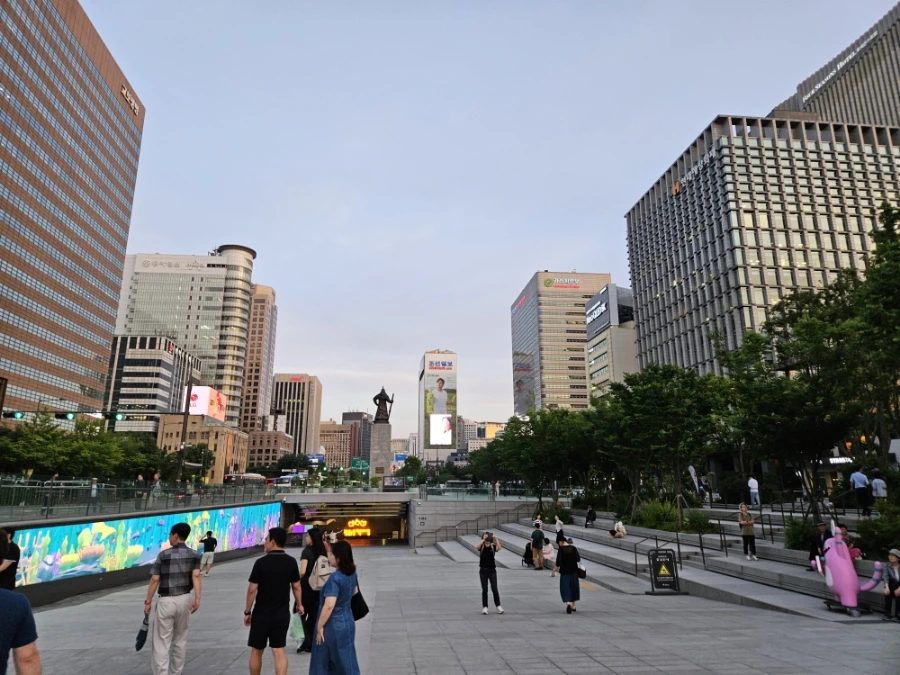 바뀐 광화문 광장을 처음 가봤다. 선선한 여름밤에 저녁을 먹고 산책하기 좋았다. 퇴근한 직장인들도 많고, 가족 단위로 놀러 온 사람들도 있고 특유의 복작한 분위기가 좋았다. 시골에 사니 이런 복작거리는 분위기마저도 그리웠다. 오랜만에 광화문 교보문고도 가고, 광장도 가보고, 청계천도 걸어보았다. 그리웠다, 도시여!