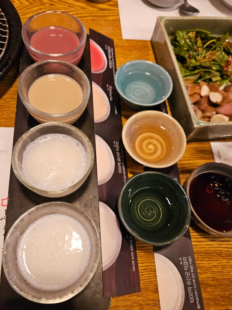 엄마 아빠랑 비 오는 날 막걸리집 가서 전과 문어숙회에 막걸리, 백세주 샘플러를 맛보고 왔다. 술이 워낙 몸에 안 받는지라 거의 안 마시다시피 하는데, 그나마 제일 좋아하는 술이 달달한 막걸리다. 네 가지 맛 다 너무 맛있었다. 막걸리가 얼마 만이었는지! 술도 안 좋아하지만 미국에 돌아가면 비 오는 날 제법 그리울 것 같다.