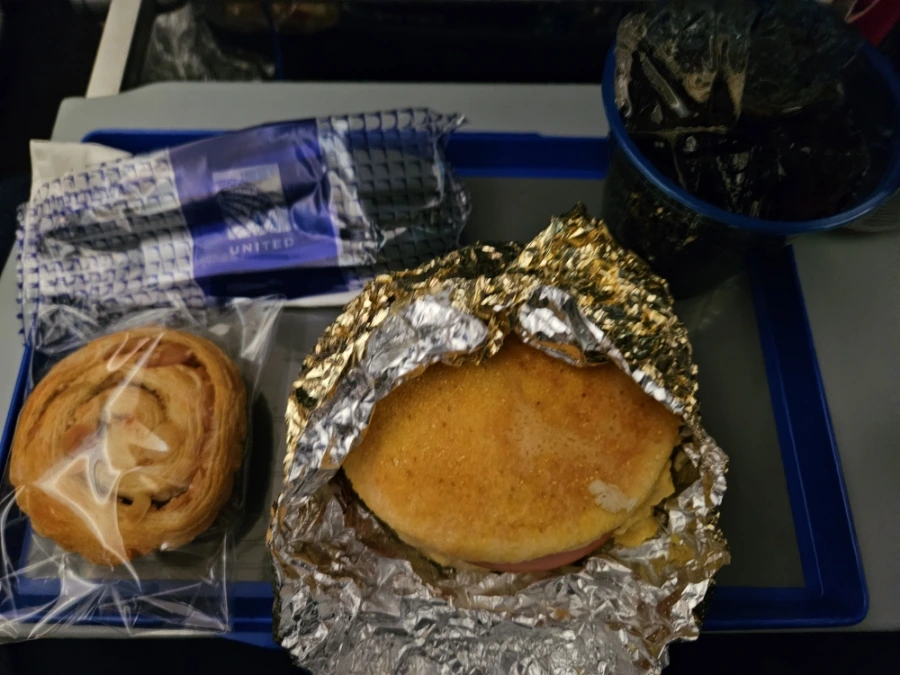 유나이티드 항공 기내식을 먹어본 이후부터 대한항공과 아시아나 항공에 감사하는 마음을 품게 되었다. 유나이티드 기내식 진짜...... 말잇못이다. 특히 오른쪽에 나온 저 아침식사의 샌드위치는 빵 식감이 종이 같아서 반도 못 먹었다. 과장이 아니라 정말로 빵이 바짝 말라서 서걱-서걱-하니 종이를 베어 무는 것 같았다. 한국 국적기들이 진짜 기내식이 맛있는 편이구나 깨달았다.