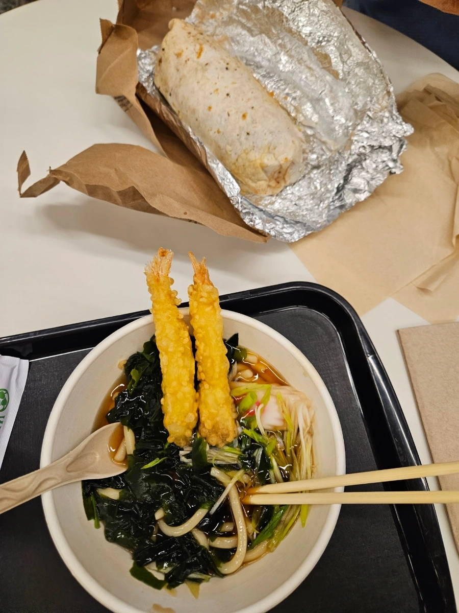 두 번째 비행 전, 샌프란시스코 공항에서 남편과 저녁을 먹었다. 남편은 고기가 잔뜩 들어간 미국식 부리또를, 나는 미역이 잔뜩 들어간 튀김 우동을 먹었다. 여기서도 입맛 취향이 여실히 드러난다. 남편은 아마도 전생에 미국인이 아니었을까 싶다. 국내선은 기내식이 따로 없기 때문에 배를 든든히 채우고 두 번째 비행에 올랐다.