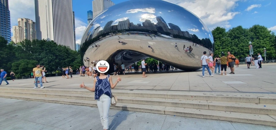 시카고의 랜드마크이자 시그니처 건축물인 더 클라우드 게이트, A.K.A '콩'이다. 전형적인 관광스팟의 느낌으로 세계인이 휴대폰 카메라를 들고 있는 광경을 볼 수 있었다. 우후죽순으로 솟은 빌딩들 사이에 우거진 녹지가 아름다웠으나, 너어무 더운 날 방문해서 그늘 한 점 없는 땡볕 때문에 제대로 즐기지 못했던 곳이다. 일사병 걸릴 것만 같았다. 날씨가 괜찮으면 공원에 뭐라도 깔고 앉아 한가로운 오후를 보내봐도 좋을만한 곳이었다. 봄가을에는 더없이 좋은 스팟이 될 듯하다.