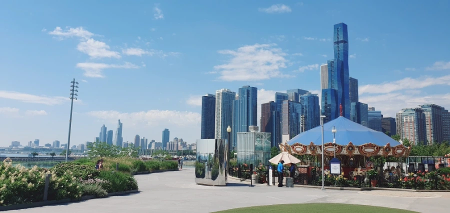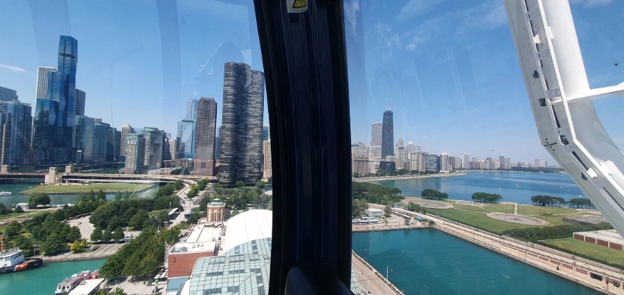 이곳은 Day 1 포스팅에 보트 투어를 했던 스팟과 상당히 가까이 있다. 관람차를 타면서 시카고의 풍경을 둘러볼 수 있다. 직접 타보니 한 여름에 에어컨 빵빵한 관람차 안에서 구경할 수 있어 상쾌하고 편안했다. 시카고의 여름은 찬란하고 쾌청하고 뜨겁다. 이 여름 풍경을 시원하게 즐길 수 있는 게 시카고 네이비피어의 최고 장점이다.