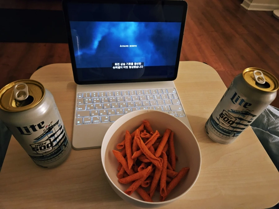 방학 동안 남편이랑 둘이 노는 시간들이다. 요즘 낮에는 같이 책을 읽고, 저녁에는 영화 보면서 맥주와 짠 과자를 먹는 것이 낙이다. 타키스 체다치즈 맛과 차가운 맥주 페어링이 끝내준다. 아무래도 차가운 맥주는 여름에 가장 맛있다. 여름의 소소한 행복이다. 이렇게 말하면 되게 술 잘 먹는 사람 같아 보이나, 문제는 조금만 마셔도 영화 속 주인공이 두 명으로 보인다는 것이다. 다음 생에는 반드시 주당 DNA를 타고나보리라 다짐해 본다.