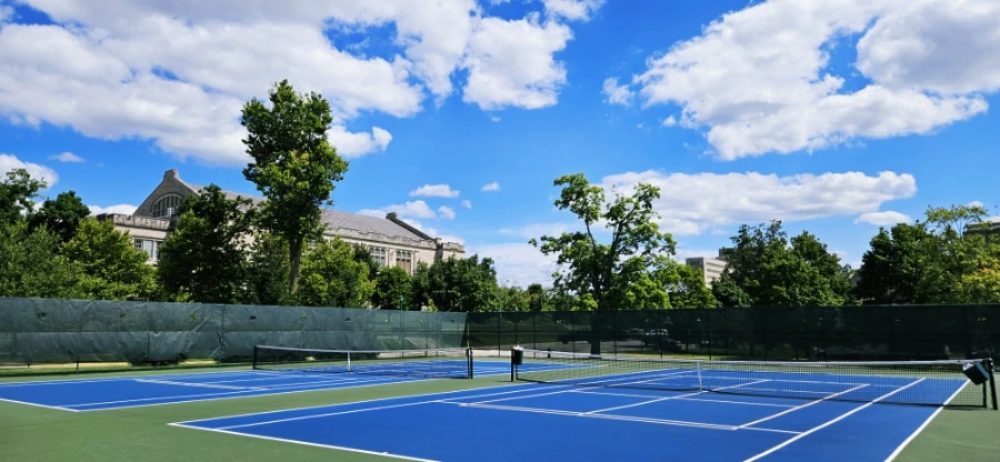 이 사진에 블루밍턴의 여름 색감이 잘 담겼다. 남편과 하루 선크림을 듬뿍 바르고 같이 야외 테니스를 치러 다녀왔다. 사진을 뚫고 나올 것만 같은 진한 색감의 하늘, 그리고 구름과의 대비, 쨍한 코발트블루 코트와 무성한 나무들 어느 것 하나 어여쁘지 않은 것이 없다. 야외 테니스 코트는 참으로 그림 같다. 테니스는 한결같이 잘 못 치지만, 그럼에도 계속 나가고 싶어지는 마법이다.