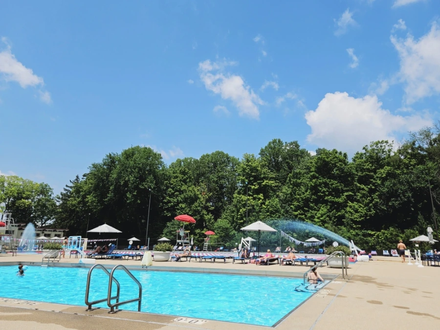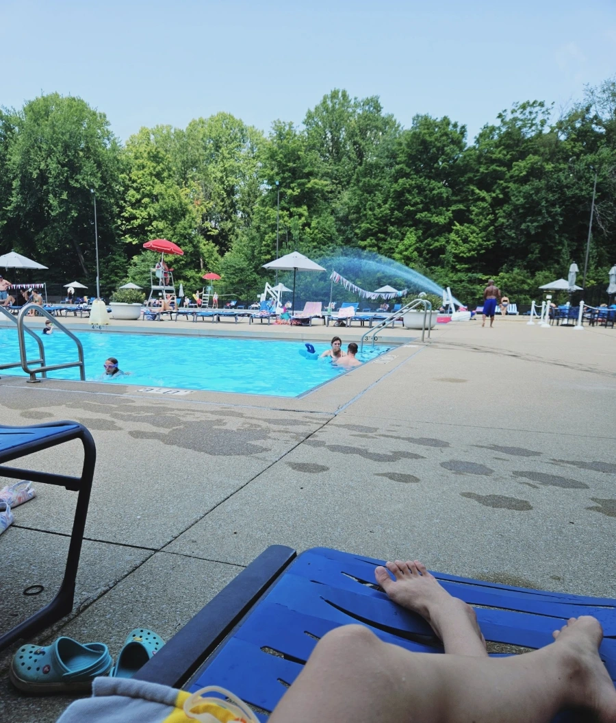 여름에 우리 동네에서 가장 좋아하는 스팟인 아웃도어 풀장에 다녀왔다. 칸쿤에 다녀온 이후로 피부가 너무 타서 되도록 안 가려고 했지만, 이 여름에 방문하지 않으면 너무 아쉬울 것 같았다. 그늘진 선베드에 앉느라고 수영 레인은 사진에서 잘 보이지 않으나, 길게 펼쳐진 50m 레인에 푸르른 주변 환경이 정말 아름답다.