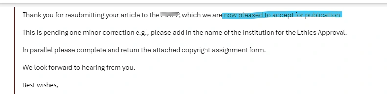 좋은 소식 하나 - 봄 학기에 작성하고, 여름 방학에 틈틈이 리비전하며 공저자로 참여한 저널 논문 중 하나가 Accept 되었다! 온라인 퍼블리쉬가 되면 흥미로운 내용에 대해 수요 없는 공급을 해보도록 하겠다. 직장인들에 퇴사 욕구에 기여하는 요소에 대한 내용이 담겨있다. 아직 최종 수정이랑 행정이 일부 남아있어 나오려면 시간은 좀 걸릴 듯하지만 모쪼록 지난 학기 번아웃에 시달리며 작업한 터라 감격이다.