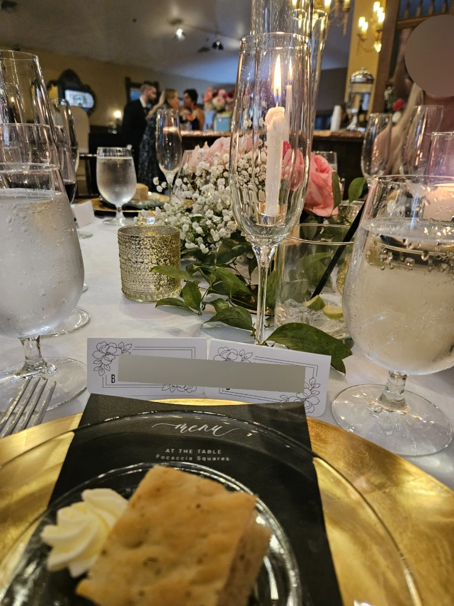 꽤 오랜 담소 시간 뒤, 주린 배를 움켜쥐고 비로소 저녁 식사와 2부 예식이 시작되었다. 식사는 지정된 이름표가 있는 곳을 찾아서 앉아서 먹도록 되어있다. 동기들, 남편들과 한 테이블에서 느리게 진행되는 코스요리를 먹었다. 실내 피로연장이 영화에서 갓 튀어나온 것처럼 감성적이게 아름다워서 마음이 절로 몽글해지는 그런 분위기였다.