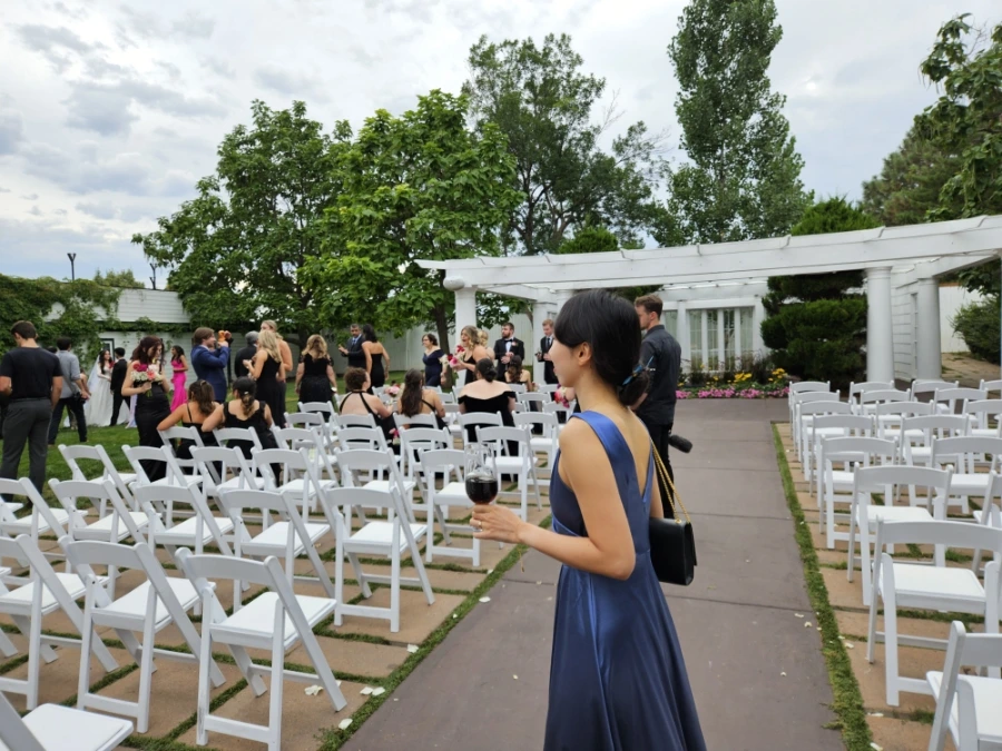 대부분 결혼식 전날에 덴버에 도착해서 하루 정도 호텔에 묵고, 결혼식에 참석했다. 우리 부부도 전날 정장과 드레스, 구두 등을 바리바리 싸 들고 덴버에 도착해서 하루 묵고, 당일 결혼식 전에 폭풍 치장을 하고 참석했다. 사실 미국 시골 대학타운에서 생활하면서 이렇게 꾸밀 일이 아예 없었기에, 오랜만에 화장하랴 머리하랴 손에 익지도 않은 치장을 하려니 시간이 유난히 오래 걸렸다. 식은땀을 흘리며 셀프 메이크업과 머리를 간신히 했다.