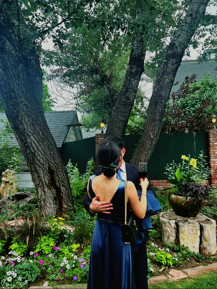 친구들이 남편과 로맨틱한 사진도 찍으라며 디렉팅 해주어 부끄럽지만 예쁜 사진도 남겼다. 웨딩 촬영 이후로 이렇게 빼입고 사진을 찍은 게 처음인 것 같다. 친구 등쌀에 못 이기는 척했지만 사실 은근 즐기고 있었다. 남편 넥타이와 드레스 색을 펄 블루로 디테일하게 맞추고 갔다. 가족끼리 이러는 것 아니지만(?), 미국 스타일로 한 컷 남겨보았다. 오랜만에 빼입은 남편을 보니 흐뭇했다, 짜식.