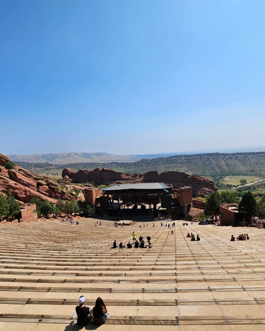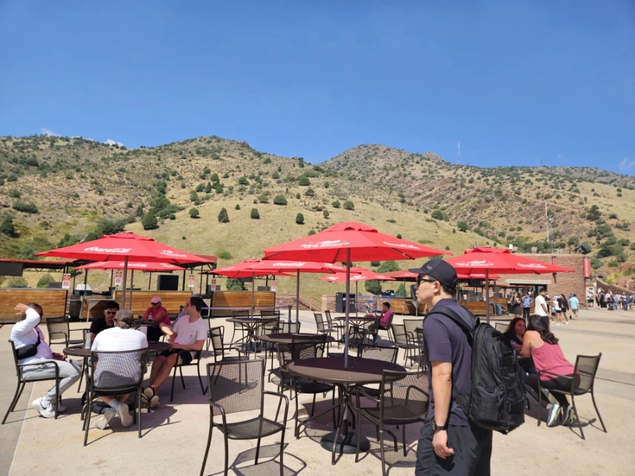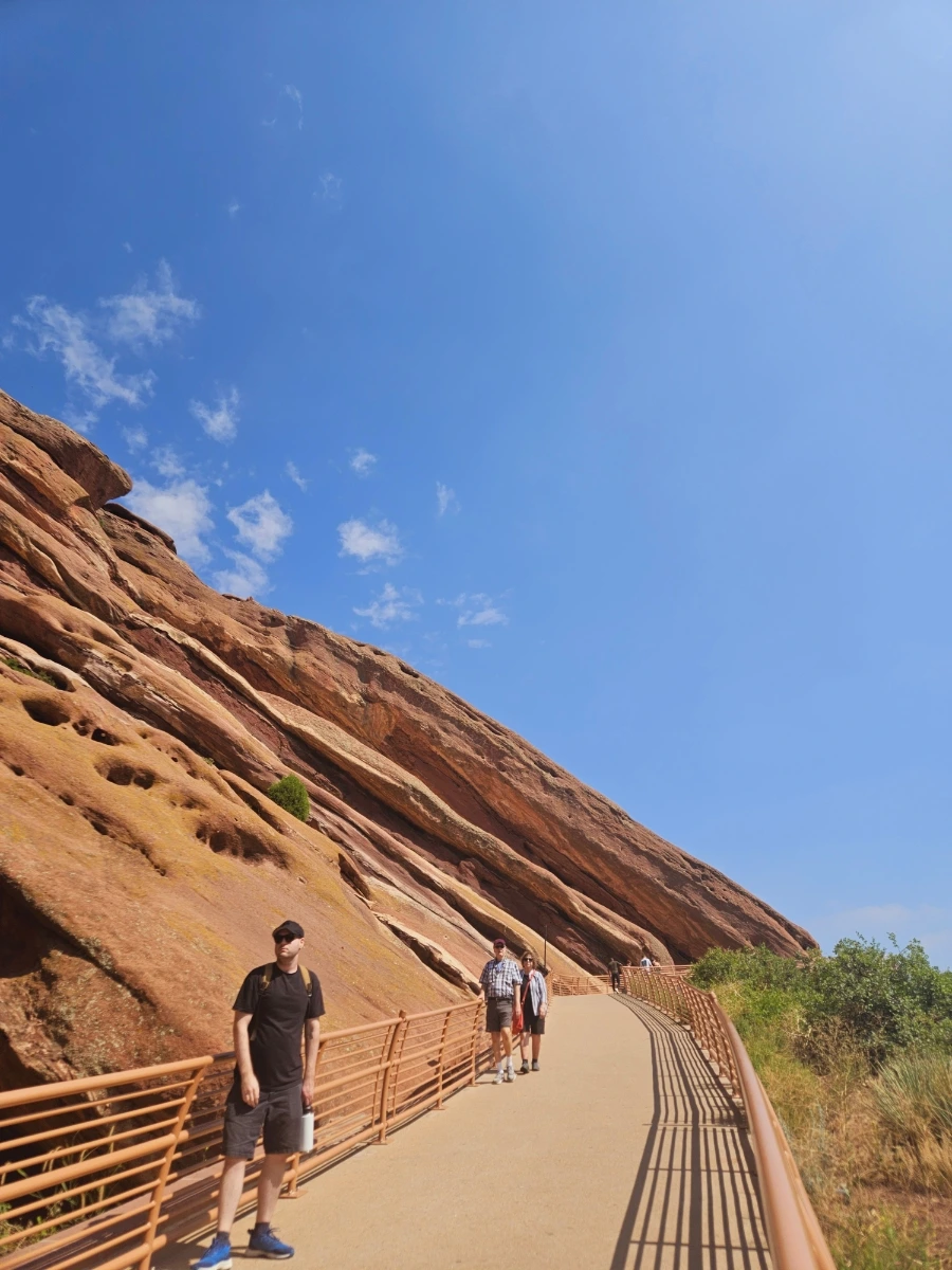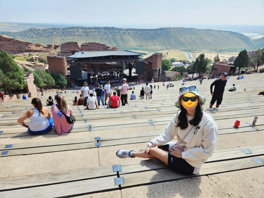덴버 시 근교(라고 해봤자 도심에서 차로 약 30분 거리에 있는)로 넘어와서 레드록 원형극장 초입에 도착했다. 차로 접근하는 길에서부터 멋짐이 뿜어져 나왔다. 차에서 내리면 이렇게 입구에서 공연장까지 조금 걸어 올라가야 하는데, 갑자기 숨이 너무 차서 당황했다. 알고 보니 거의 2.000m에 달하는 고도에 위치해 있었다고 한다.