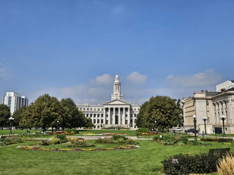 작지만 깔끔하고 감성 있게 지어진 덴버시 관공서 건물이다. 콜로라도 주 의회 건물과 정면으로 마주하고 있고, 그 사이에 시빅센터공원이 조성되어 있다. 주변의 고층 금융권 빌딩 숲 사이에 전통적인 느낌의 관공서들이 위치하고 있는 게, 한국에 비유하자면 전통과 현대가 공존하는 광화문 일대를 보는 듯한 기분이었다. 깔끔하게 조성이 잘 되어있다는 인상을 받았다.