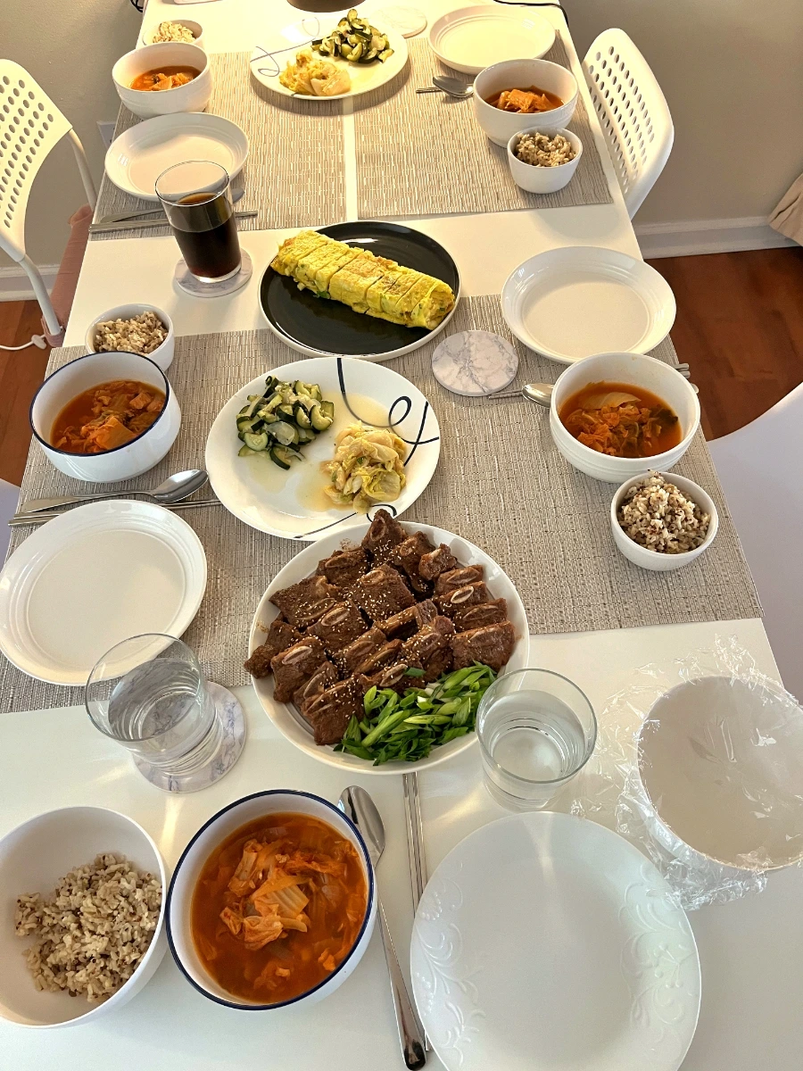 가을 방학 기념, 친구들을 초대해서 오래간만에 맛난 것들을 잔뜩 나누어 먹었다. 행복이 뭐 별건가? 좋아하는 사람들과 맛있는 음식 나누어 먹는 것, 그뿐이다. 오랜만에 LA갈비를 사다가 재워서 굽고 참치 김치찌개, 계란말이, 나리가 해온 나물들과 해서 같이 배 터지게 먹었다. 다들 잘 먹어줘서 기분이 좋았다. 그동안 바빠서 통 모이지를 못했는데 오랜만에 모여서 소소하게 웃고 떠드니 환기도 많이 되고 즐거웠다.