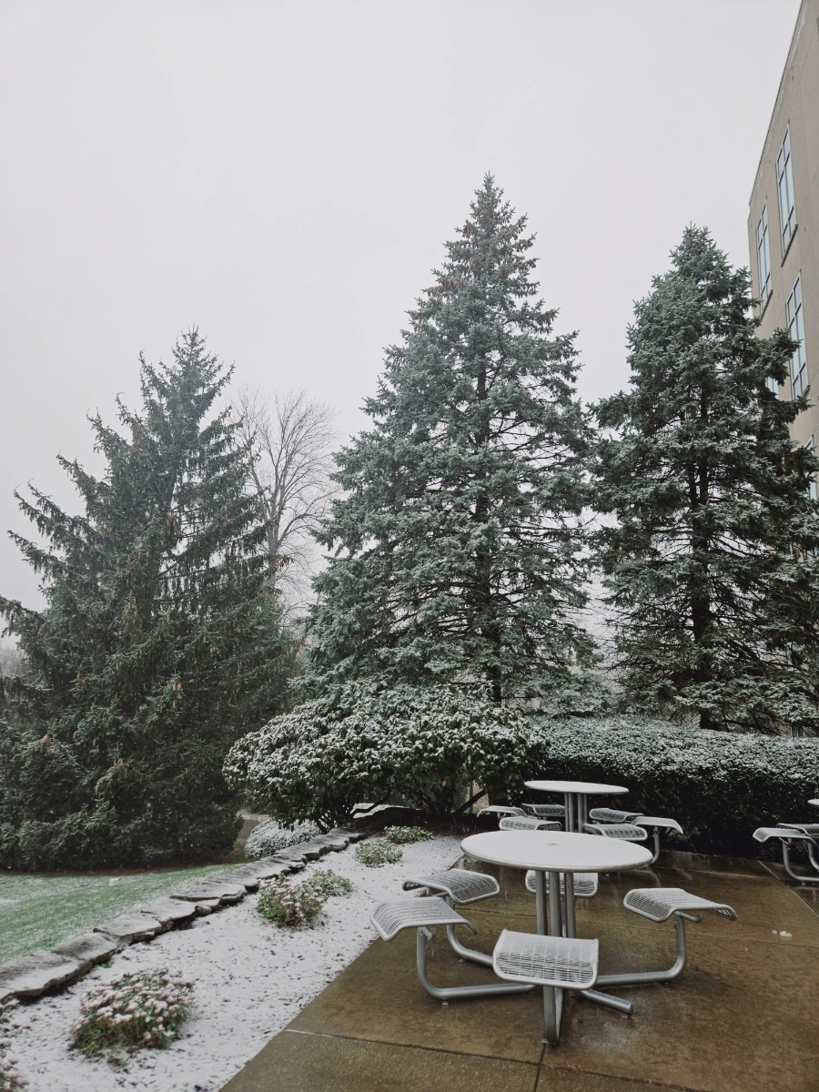 블루밍턴에는 벌써 첫눈이 내렸다. 지도 교수님이랑 미팅을 하는데 교수님 너머로 창문에 눈발이 꽤 많이 흩날리는 것을 보느라 교수님 말에 집중을 못 할 뻔했다. 금방 녹아 없어졌을지언정 잠시나마 아름답게 내려 쌓인 눈들을 보니 겨울과 연말이 비로소 실감이 난다. 한 해가 벌써 다 가고 있다니, 참. 바쁘게 살다가 정신을 한 번씩 차려보면 시간이 말도 못 하게 빠르다.