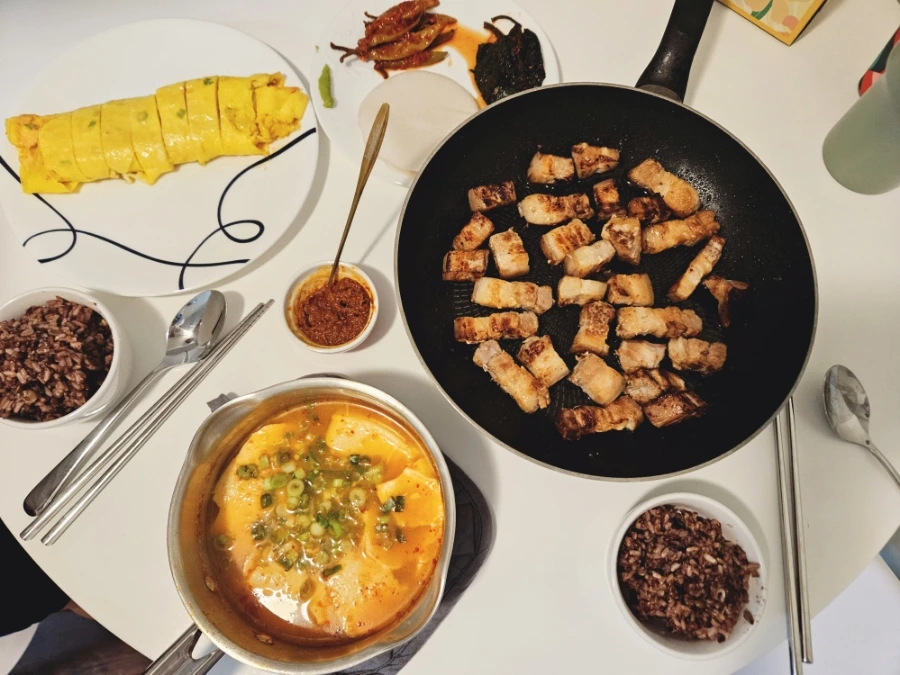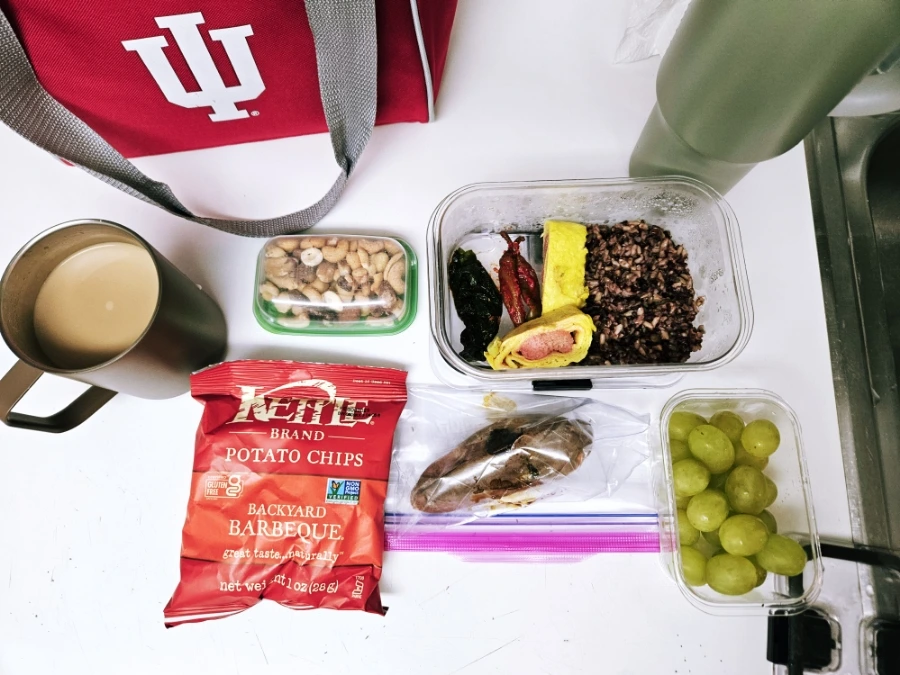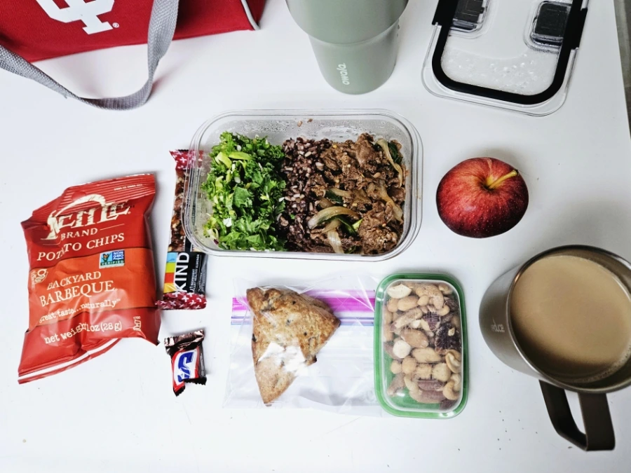 금주의 도시락이다. 위의 첫 번째 사진은, 보양 겸 오랜만에 단백질 위주로 해 본 저녁 집밥이다. 잡곡밥에 삼겹살 구이와 순두부찌개, 명란 계란말이, 쌈무와 고추무침, 깻잎무침이다. 그리고 남은 반찬들은 다음날 도시락이 된다. 오른쪽 사진은 불고기덮밥에 케일 샐러드 채소를 추가해서 갔다. 사이드로 틈틈이 먹을 군고구마, 과일 간식(포도 혹은 사과), 스콘, 감자칩, 견과류 등을 바리바리 싸간다.