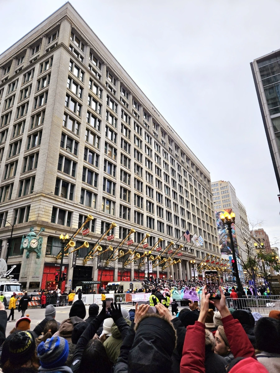 첫날 호텔에서 잠을 자고 일어나자마자 아침에 펼쳐지는 Macys Thanksgiving Parade를 보러 거리로 향했다. 미국의 7대 추수감사절 퍼레이드 중 하나가 바로 이 시카고 Macy's Parade라고 한다. 이름 그대로 Macy's 백화점 앞 대로변에서 열렸다. 눈 뜨자마자 침대를 박차고 나와 퍼레이드 갈 준비를 마치고 나왔다.