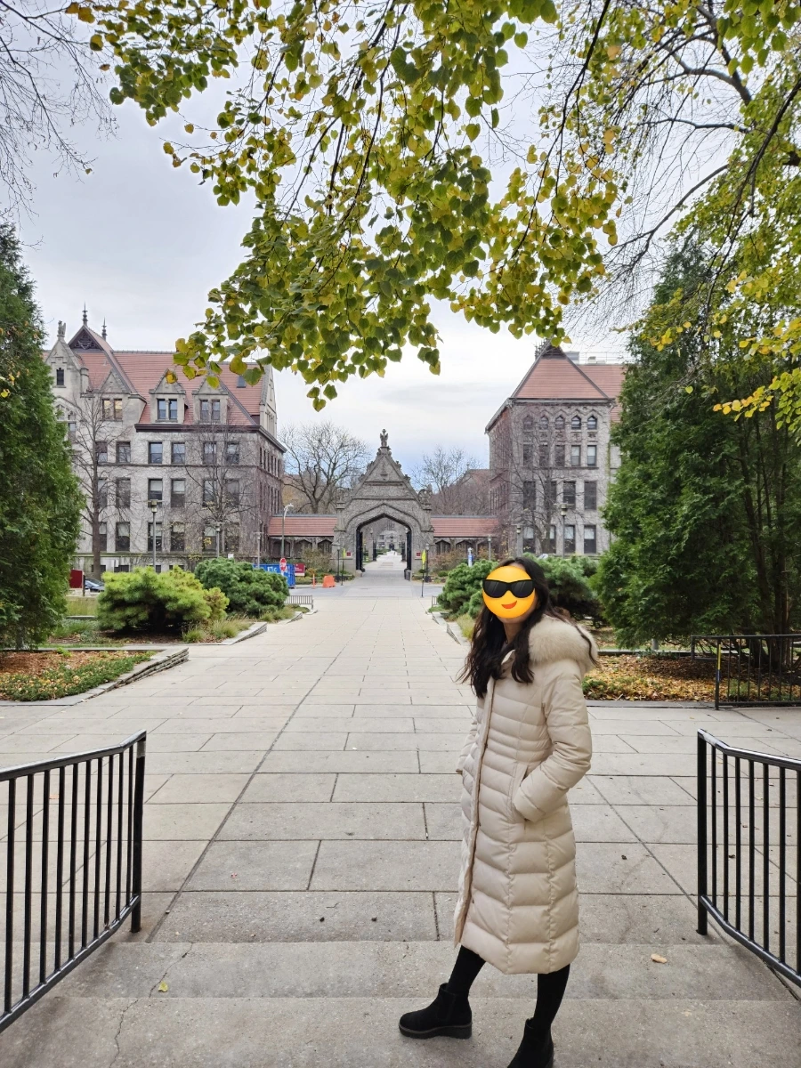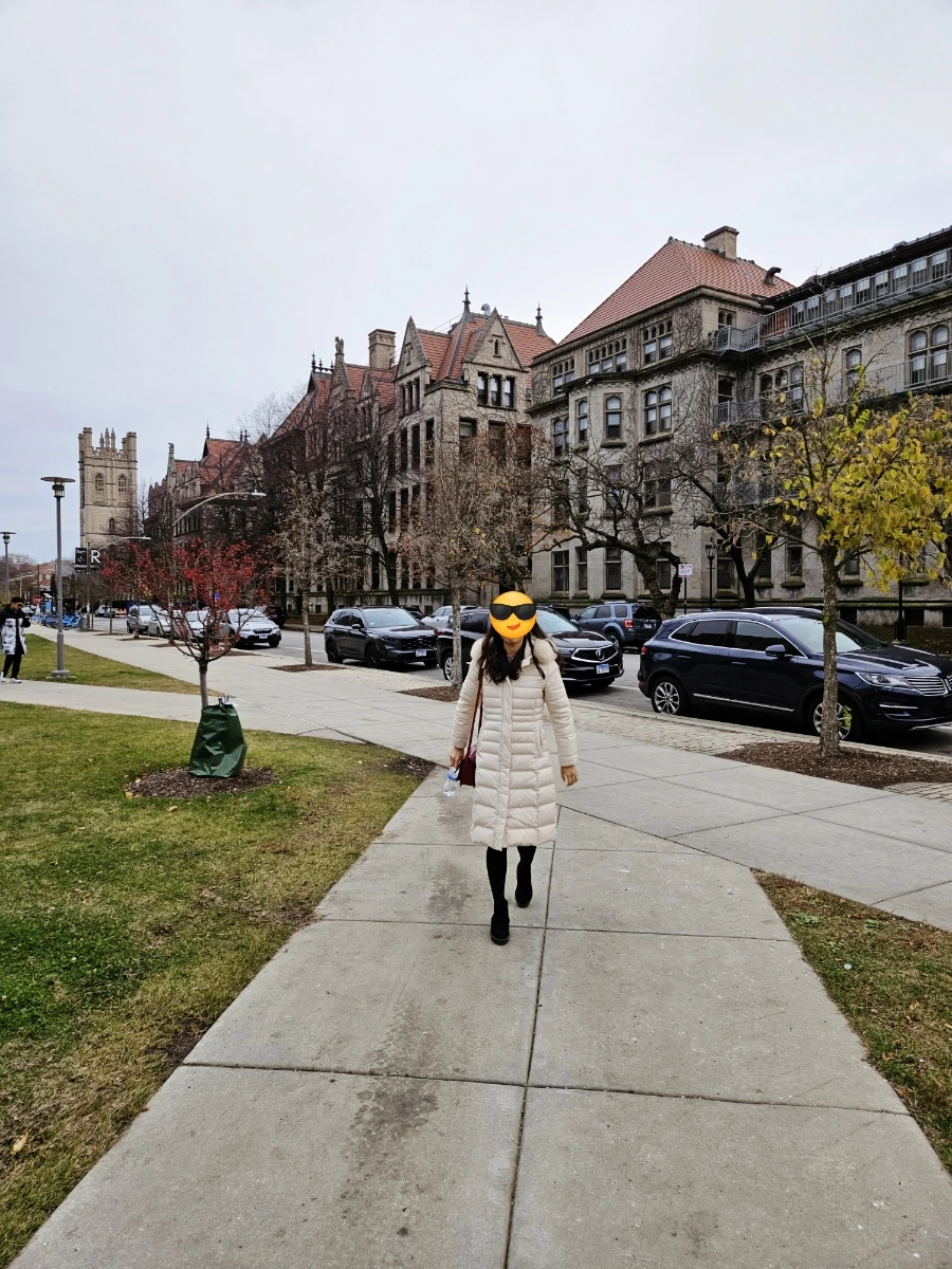 아, 그리고 시카고 대학에서 느낀 점 하나. 학생들이 옷을 비교적 더 차려입는다는 것이다. 블루밍턴에서는 요즘 날씨에 코트나 로퍼를 장착한 학생은 볼 일이 없다. 대부분 펑퍼짐한 운동복을 어그 부츠에 아무렇게나 넣은 채 패딩을 걸치고 다니는 것이 국룰이다. 그런데 이 학교에서는 모직 코트를 입은 사람들도 많이 봤고, 로퍼를 신은 이들도 여럿 보았다. 무려 바지가 대부분 청바지 아니면 면바지였다. 운동복이 아니었다는 것이다. 블루밍턴에서 보던 캠퍼스 착장이 아닌데 하고 생각했다.